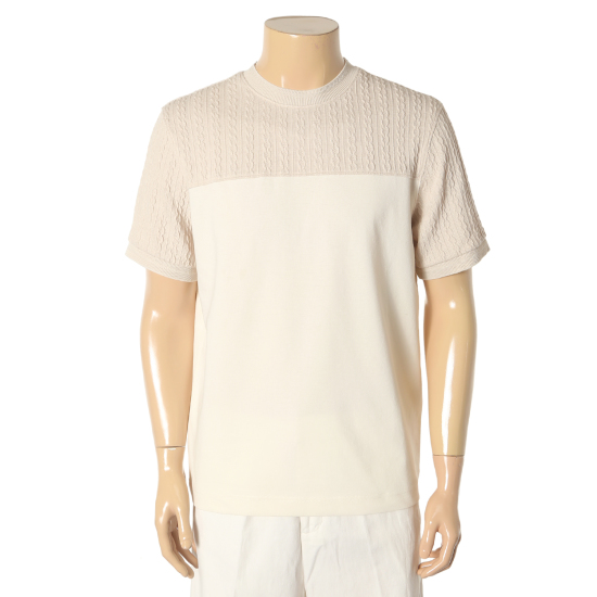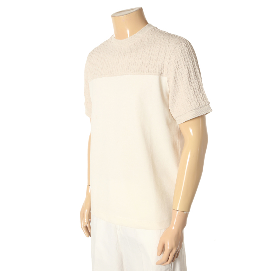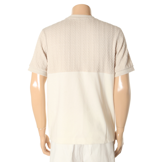 SS 베이지 조직니트 믹스 라운드 반팔 티셔츠