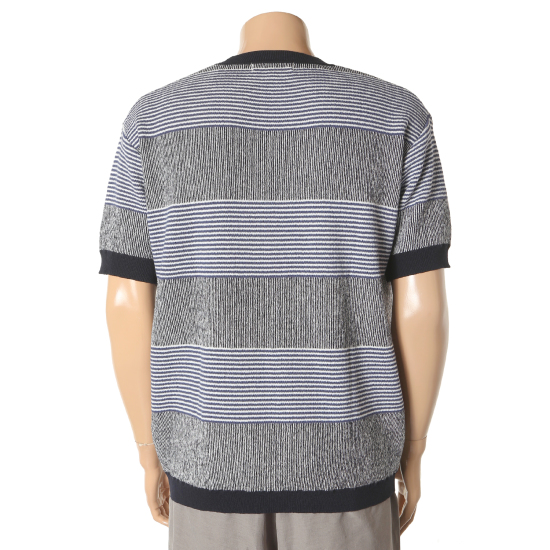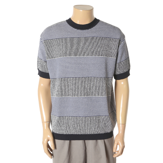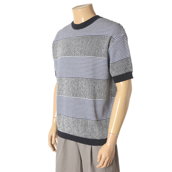 SS 네이비 멀티 스트라이프 라운드 반팔 니트