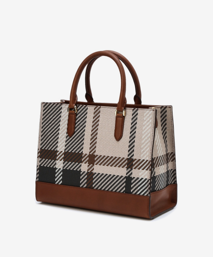 NEW 타탄체크 패턴의 PVC 소재에 가죽 본연이 느낌을 최대한 살린 클래식한 느낌의 베지터블 소가죽 소재를 배색하였으며,