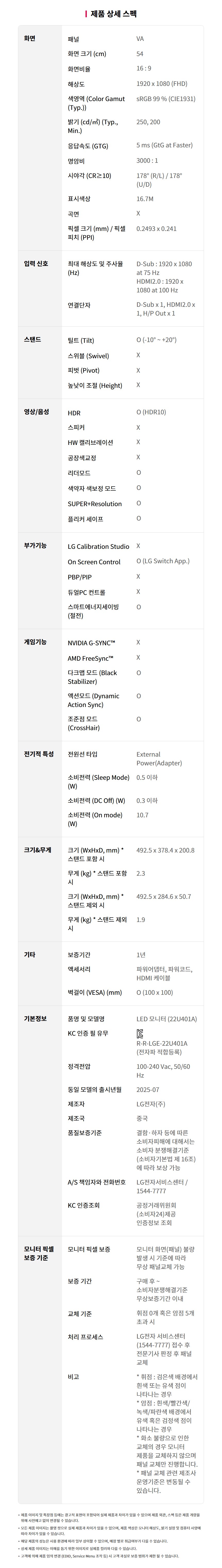 LG 22U401A 100Hz FHD 54cm PC 일반 사무 모니터