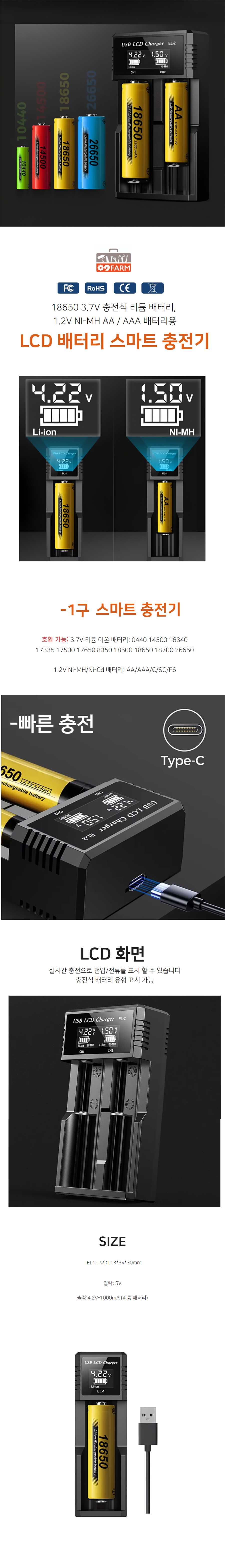 LCD 1구충전기 충전지충전기 3.7V 18650배터리 AA C타입 1구충전기 충전지충전