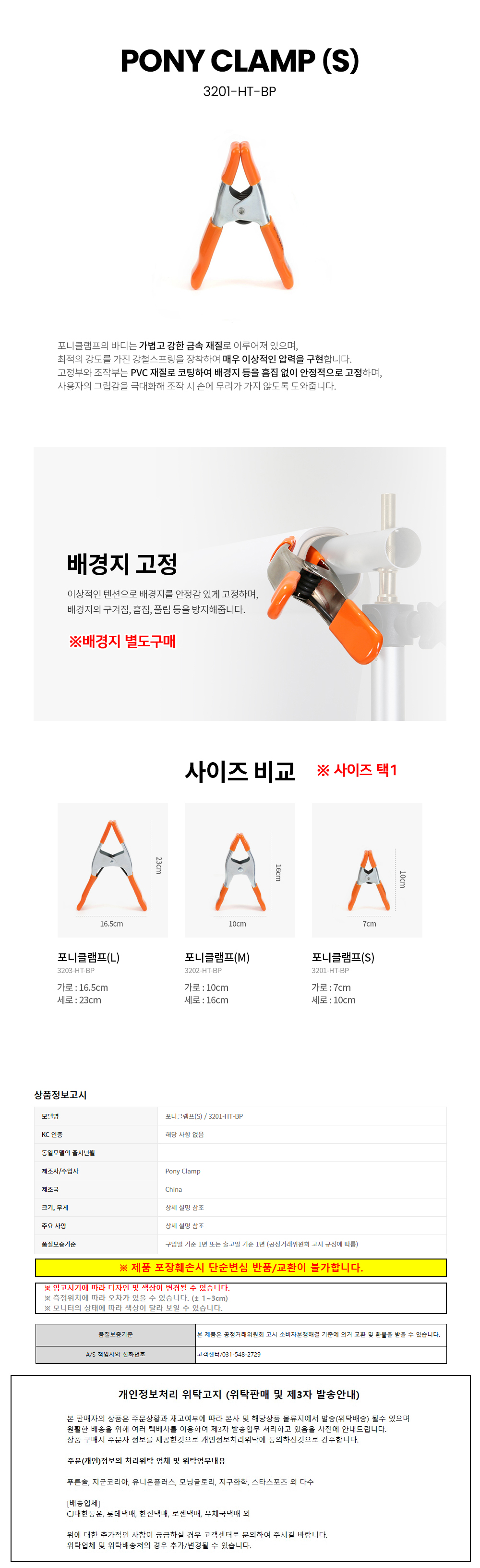 [상품명: 포니 사진 촬영장비 배경지 고정 클램프 (S)]