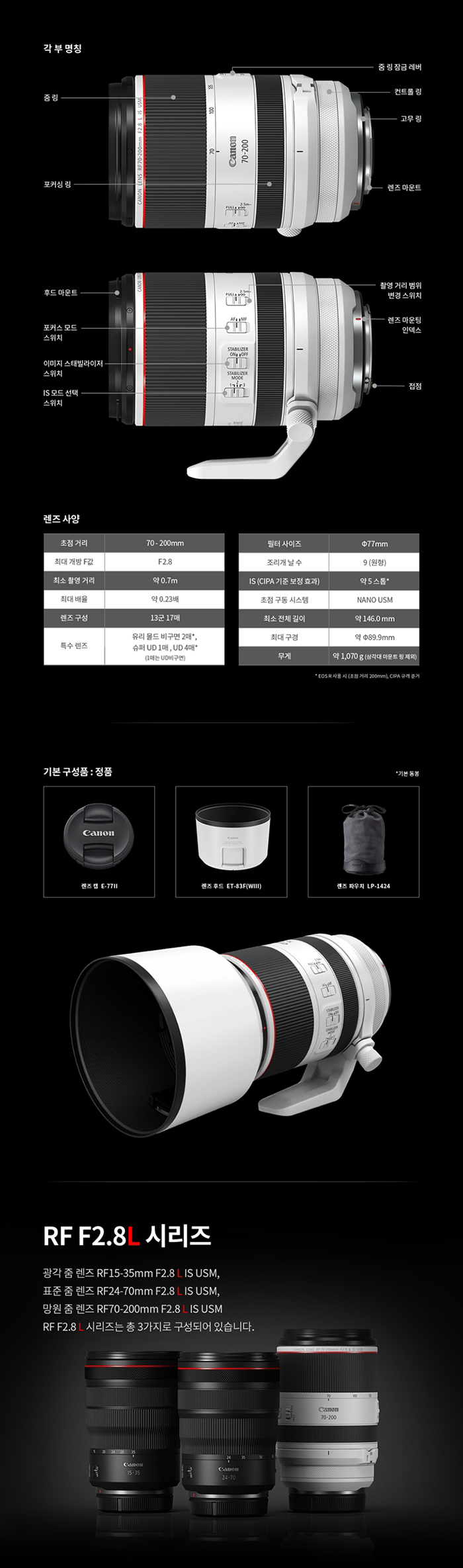 캐논 RF 70-200mm F2.8 L IS USM (후드/케이스포함)+77UV 정품등록행사(~11.3...