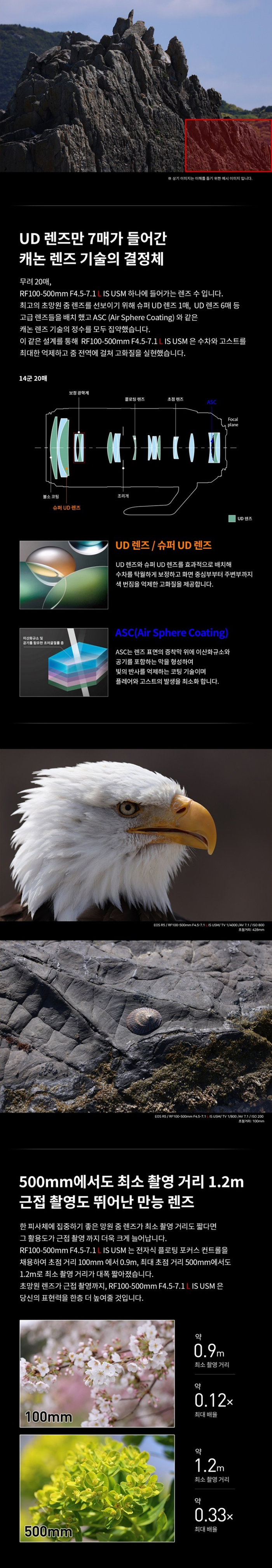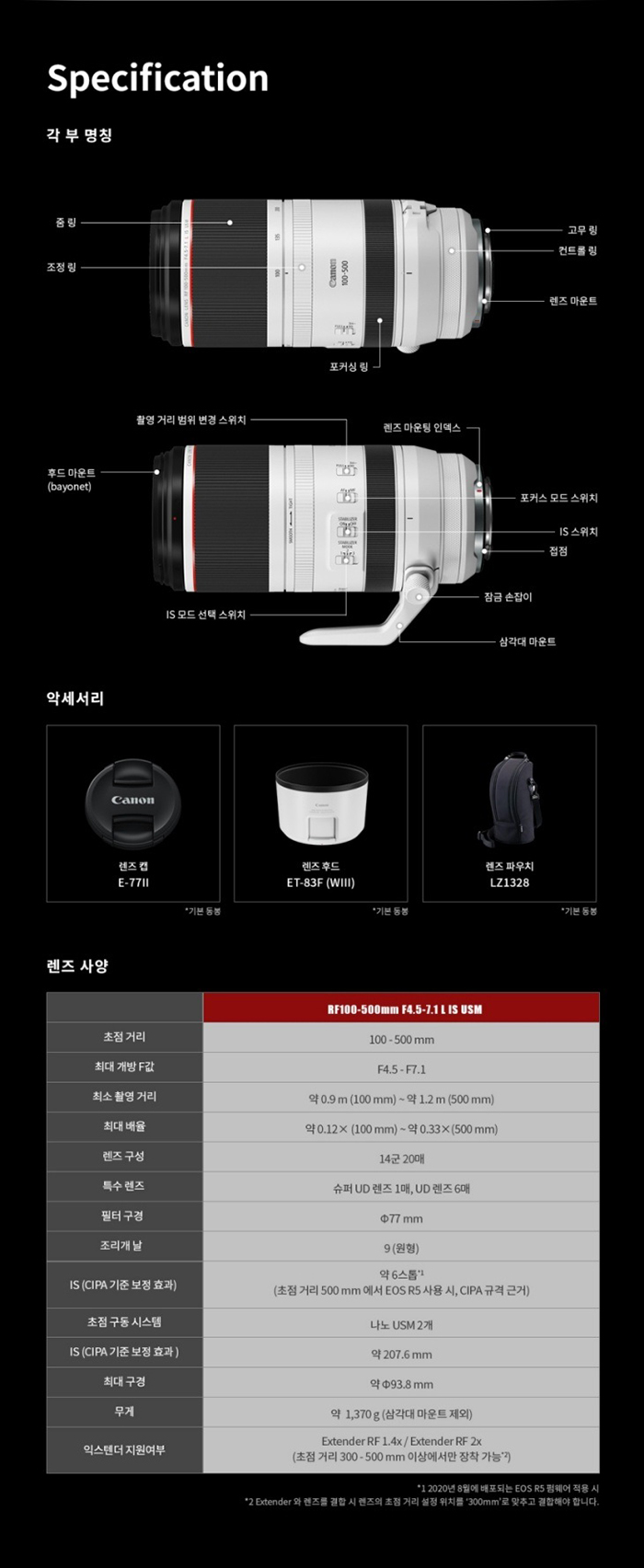 캐논 RF 100-500mm F4.5-7.1 L IS USM (후드/케이스포함)+ 77UV필터