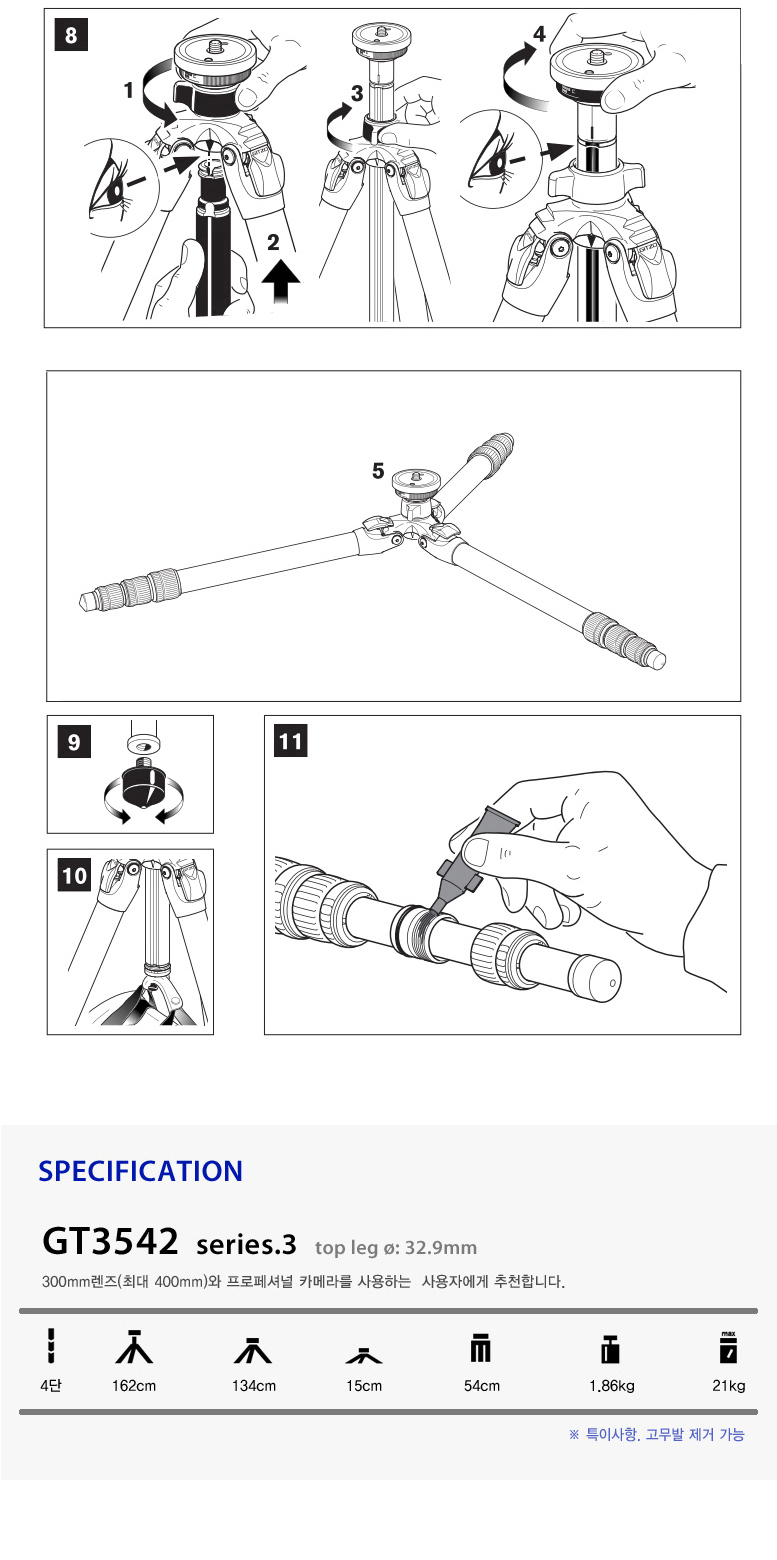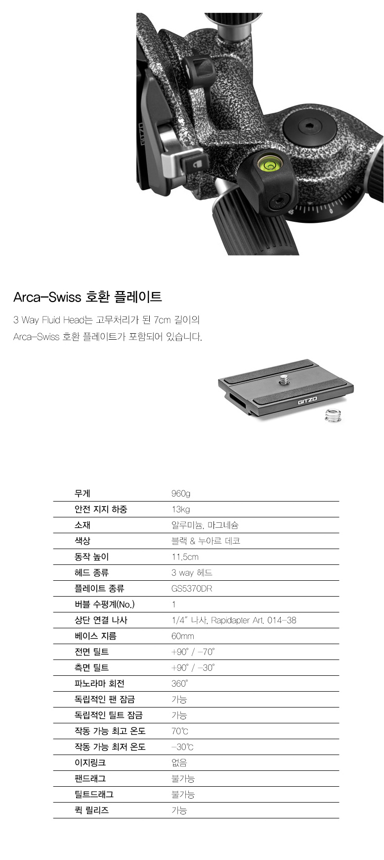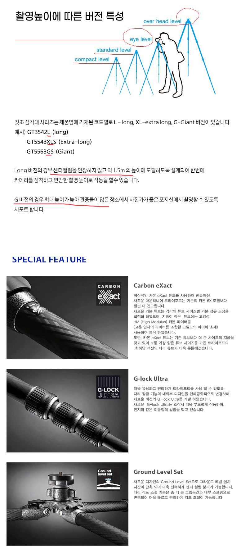 짓조 카본 삼각대킷 GT3542 + GHF3W 3웨이 헤드