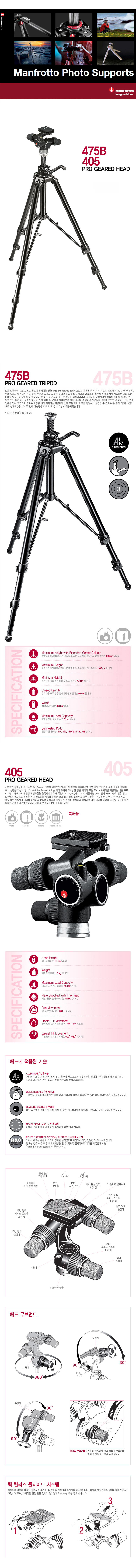 내일도착보장 대형 기어식 센터컬럼 삼각대 475B + 405 프로 기어 헤드 킷