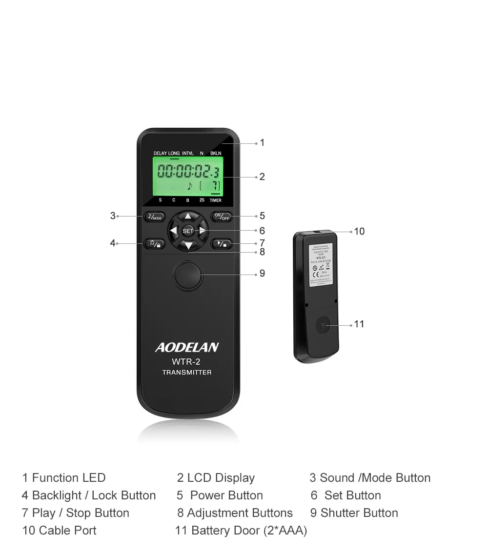 1. AODELAN WTR-2 camera remote control is a combined wireless and wired timer controlled remote shutter release.