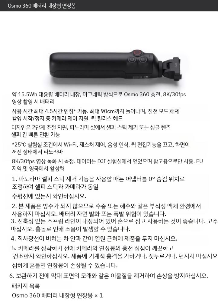 DJI Osmo 360 배터리 확장 스틱 투명 렌즈 보호 필름 셀카봉 넥브라켓 맥스 Osmo 조절식 퀵 릴리스 어댑터
