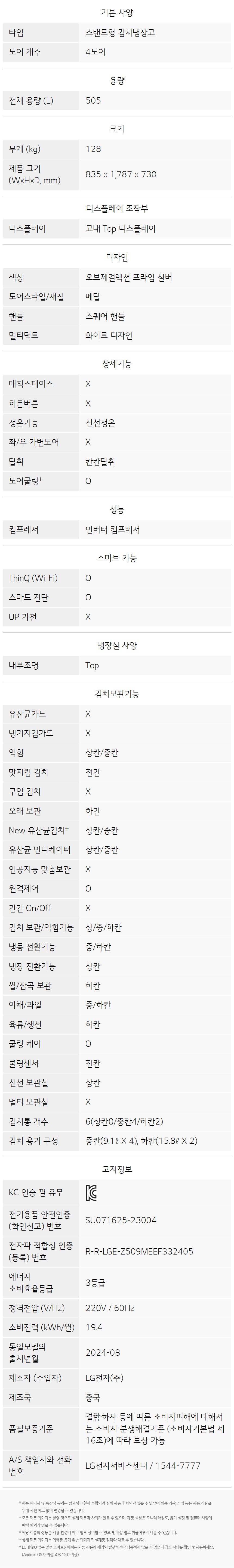 (LG)(신세계강남점)LG전자공식판매처 디오스 오브제컬렉션 김치냉장고 Z509MPSF13 (505L)