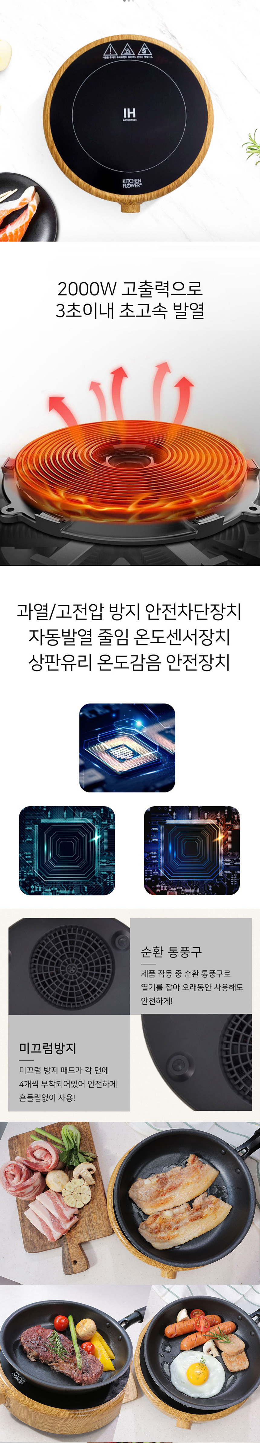 (현대Hmall)키친플라워 우드 원형 1구 인덕션레인지 (전용후라이팬 사은품)