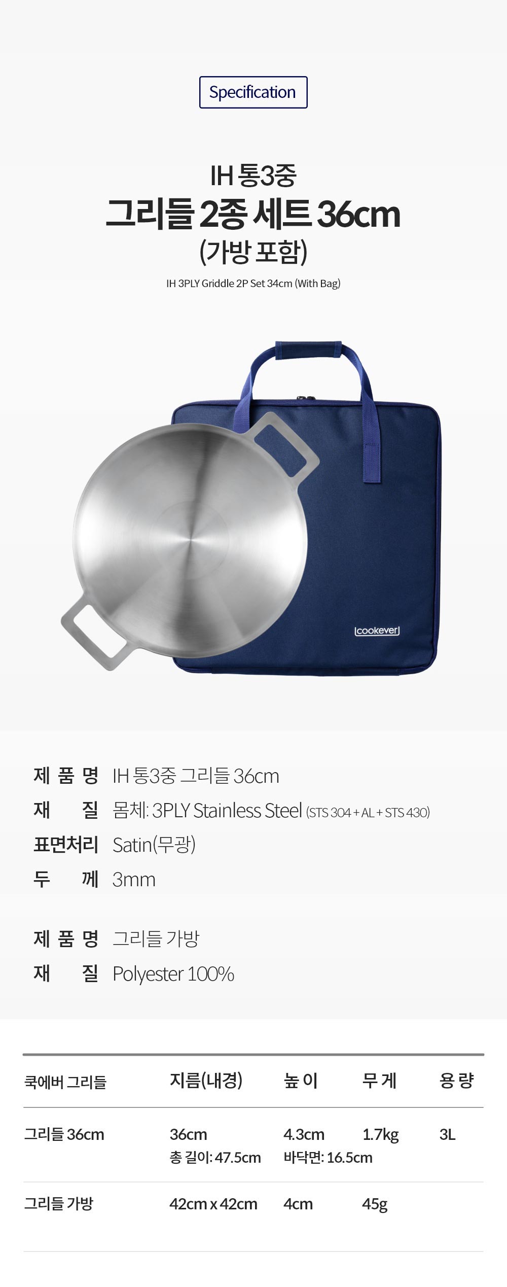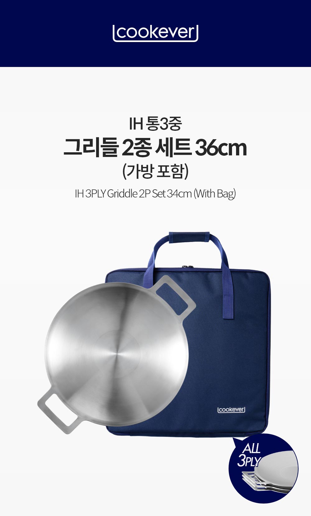 쿡에버 IH 인덕션 통3중 스텐 그리들 2종 세트 36cm (가방포함)