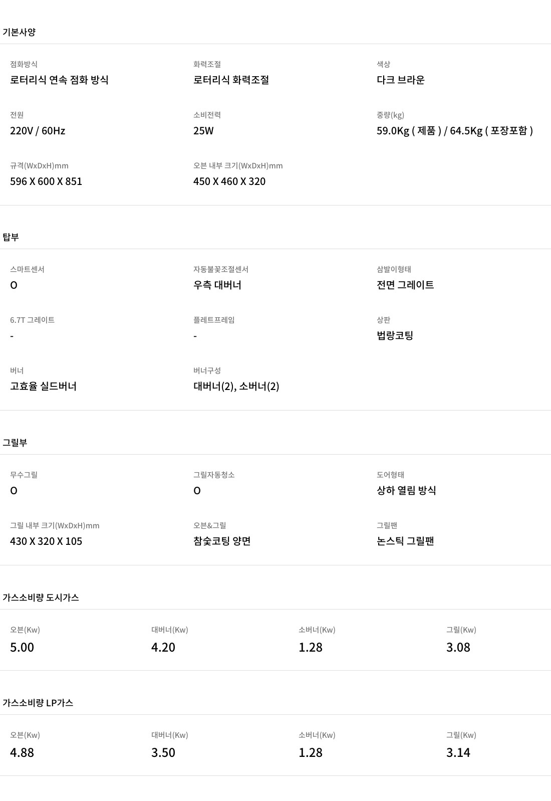 참숯코팅 무수그릴 가스 오븐레인지 브라운 RSF-BM73BR__s