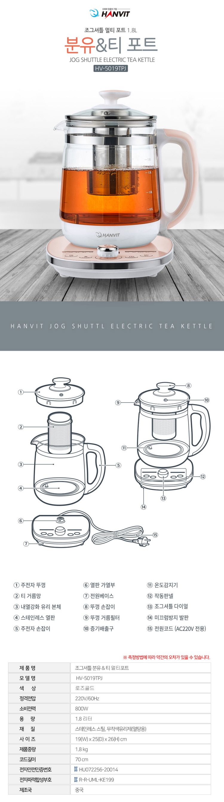 한빛 조그셔틀 분유포트 HV-5019TPJ 1.8L