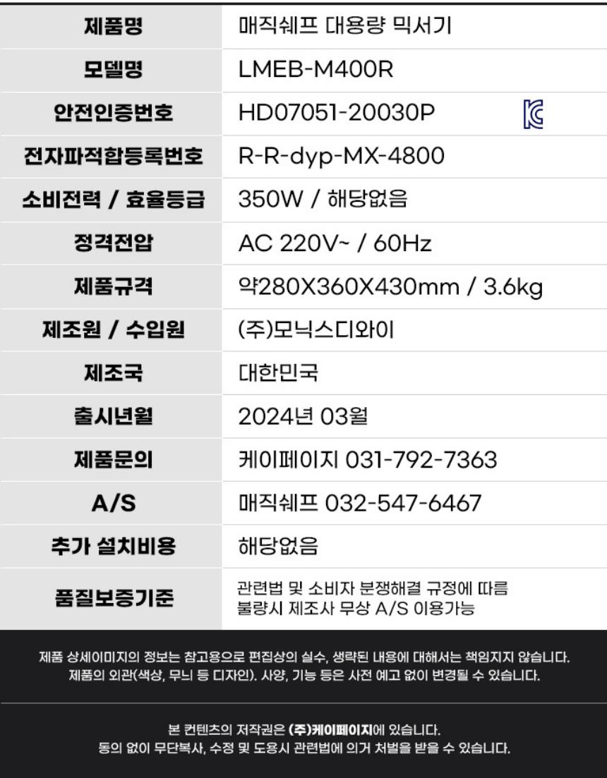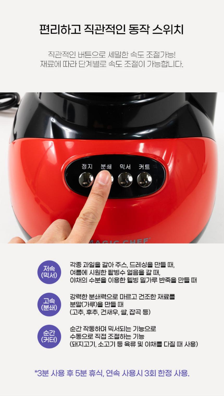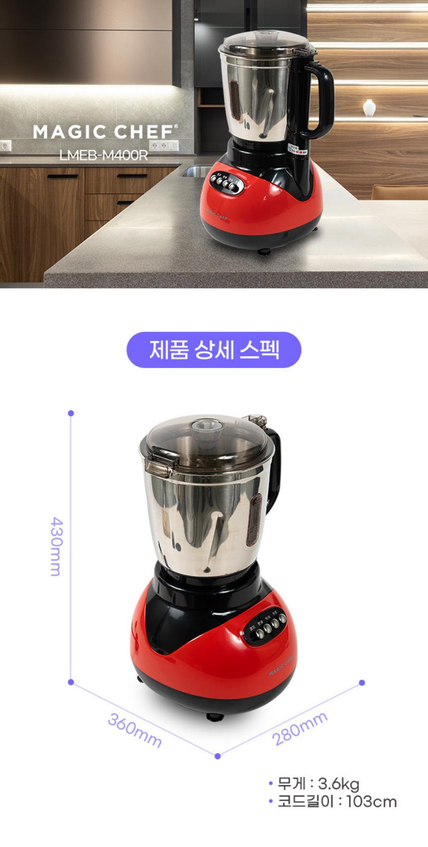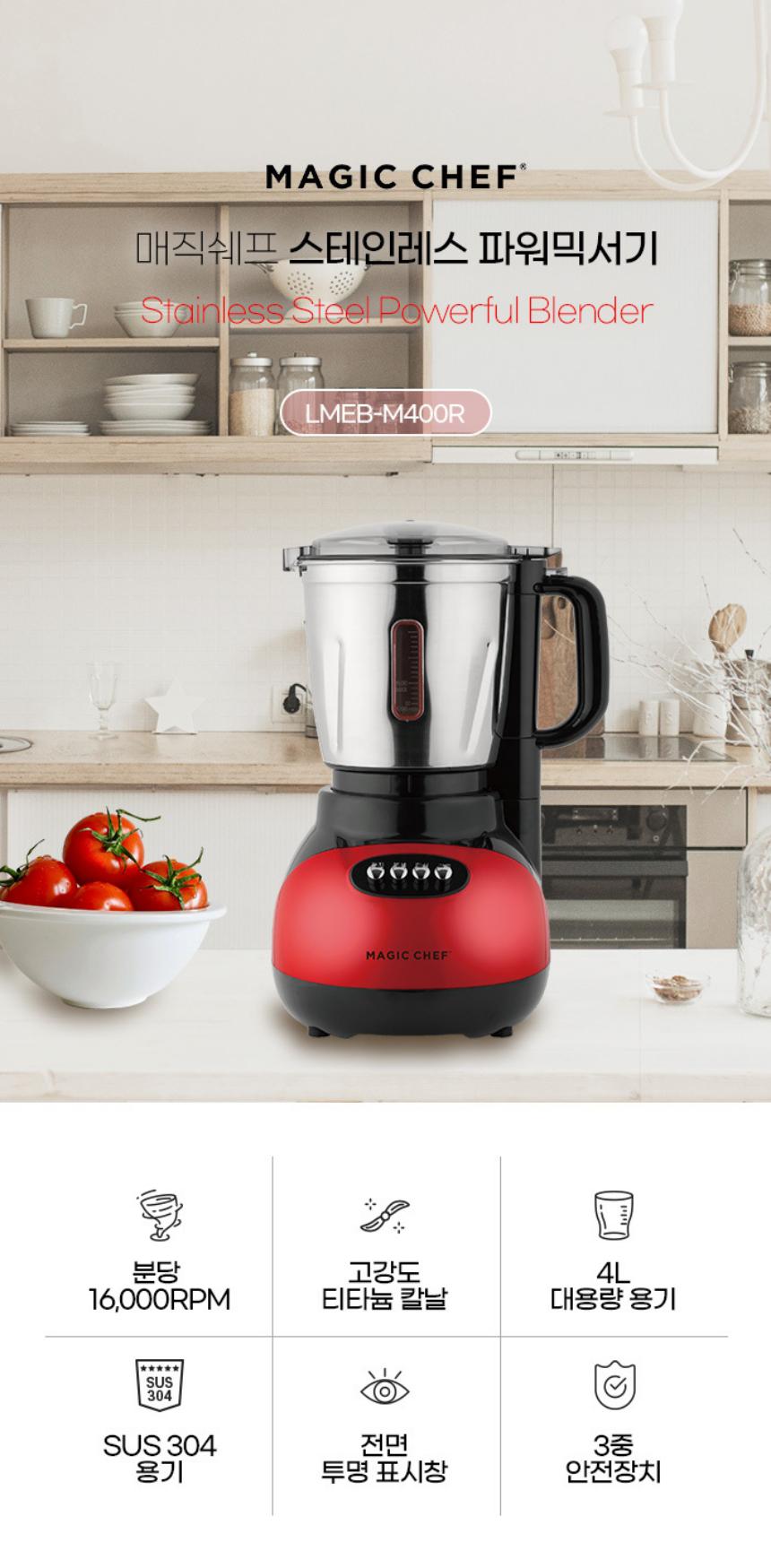 매직쉐프 국산 대형 대용량 믹서기 스텐 블렌더 믹서분쇄기 4L 레드