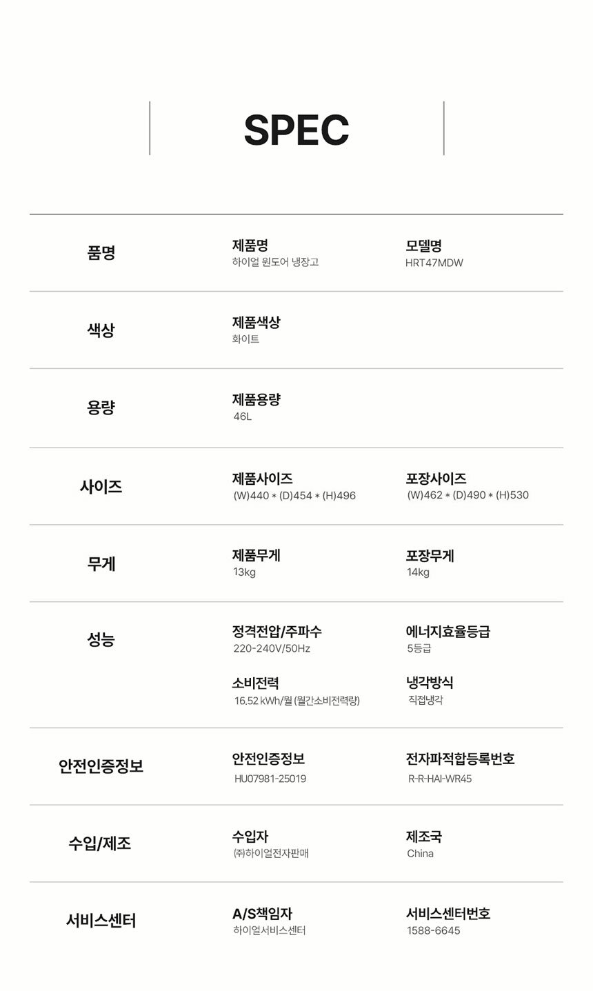하이얼 미니 냉장고 HRT47MDW (46리터) 택배배송