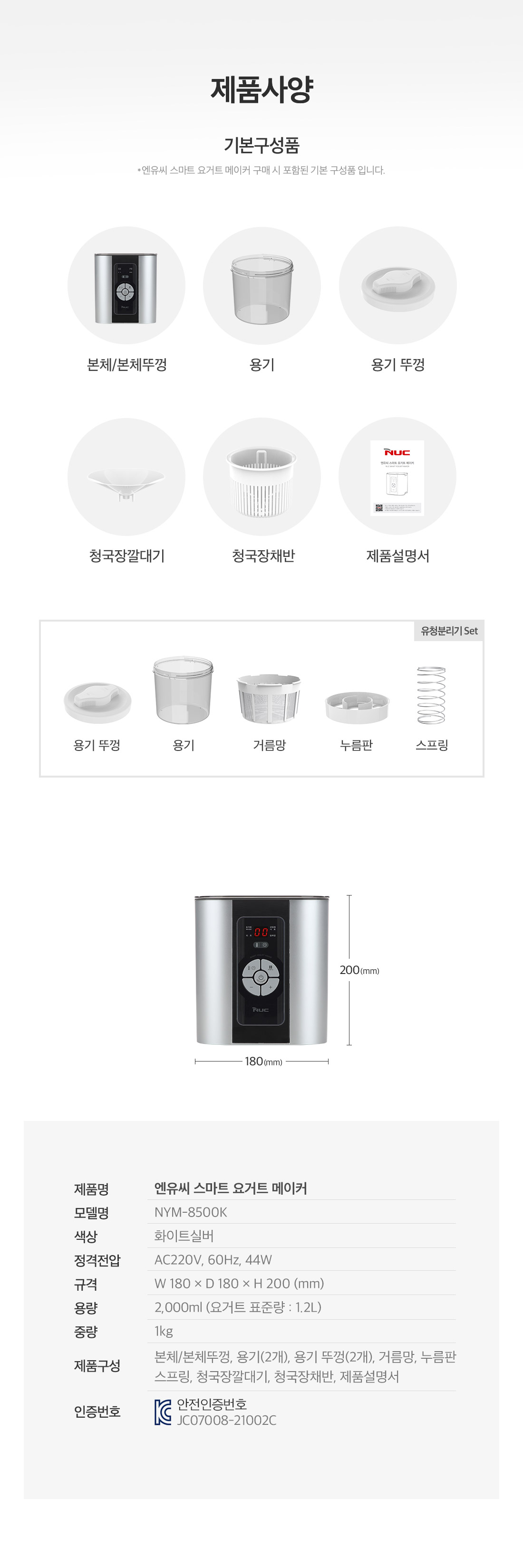 엔유씨2025년 신제품 스마트 요거트 메이커 NYM-8500K 화이트실버