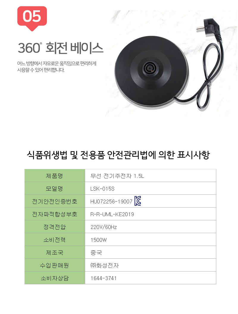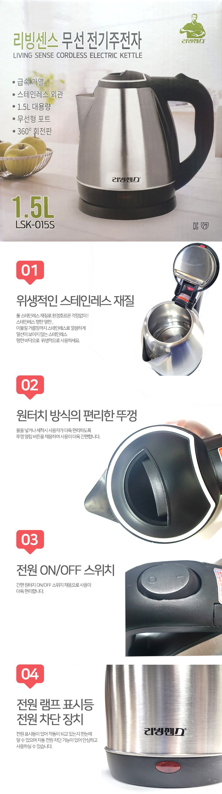 리빙센스 원터치 1.5L 스텐레스 전기주전자 무선포트/LSK-015S