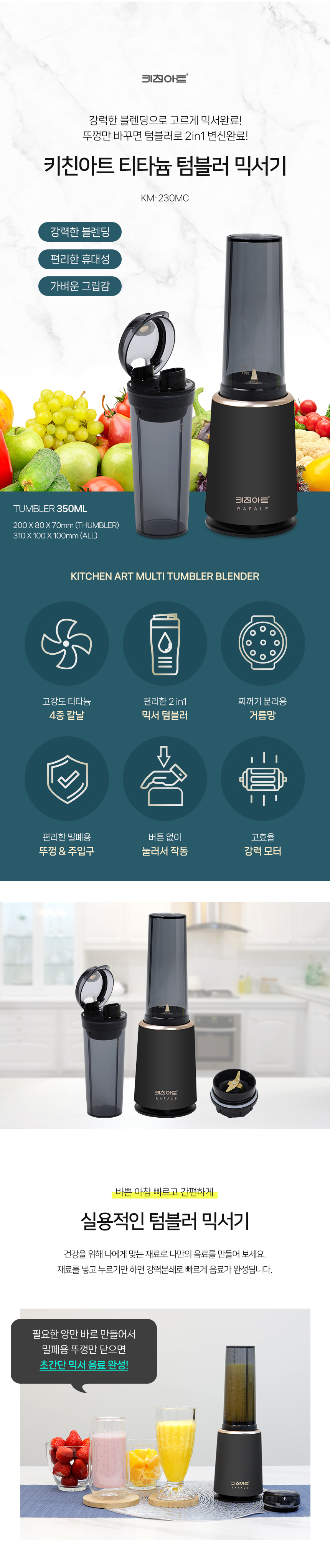 키친아트 텀블러 믹서기 KM-230MC 티타늄 칼날