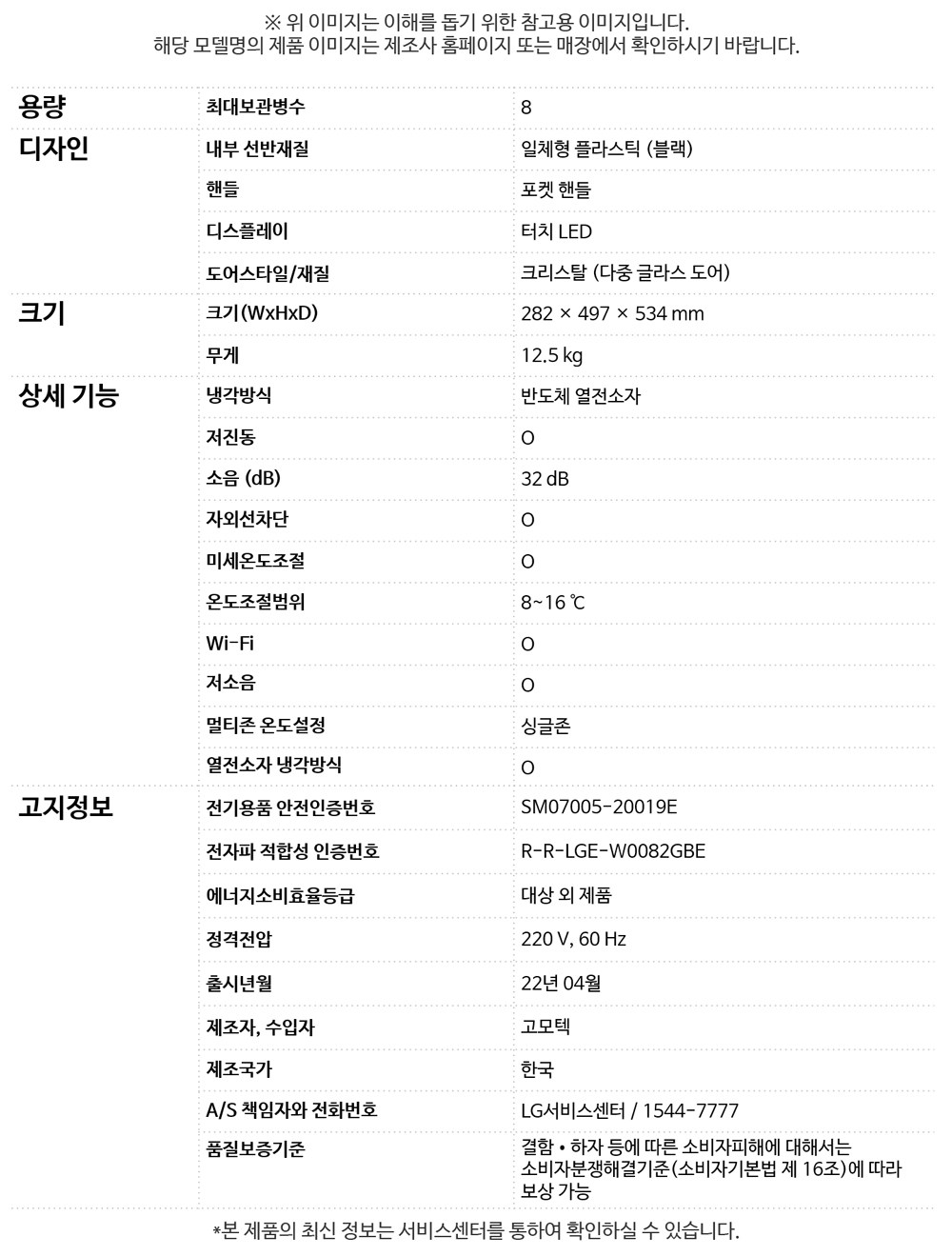 (롯데백화점)LG W0082GBE 디오스 오브제컬렉션 8병용 미니 와인셀러 베이지 / KN