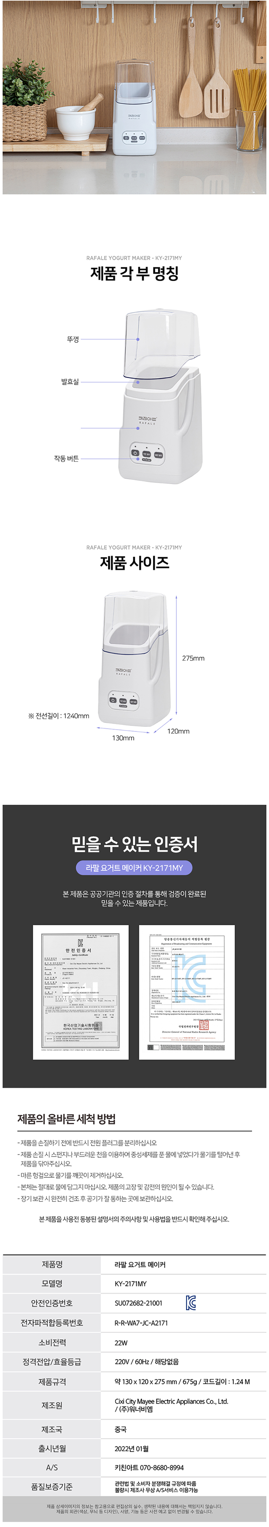 키친아트_ 라팔 요거트 메이커 KY-2171MY (간편 요거트제조)