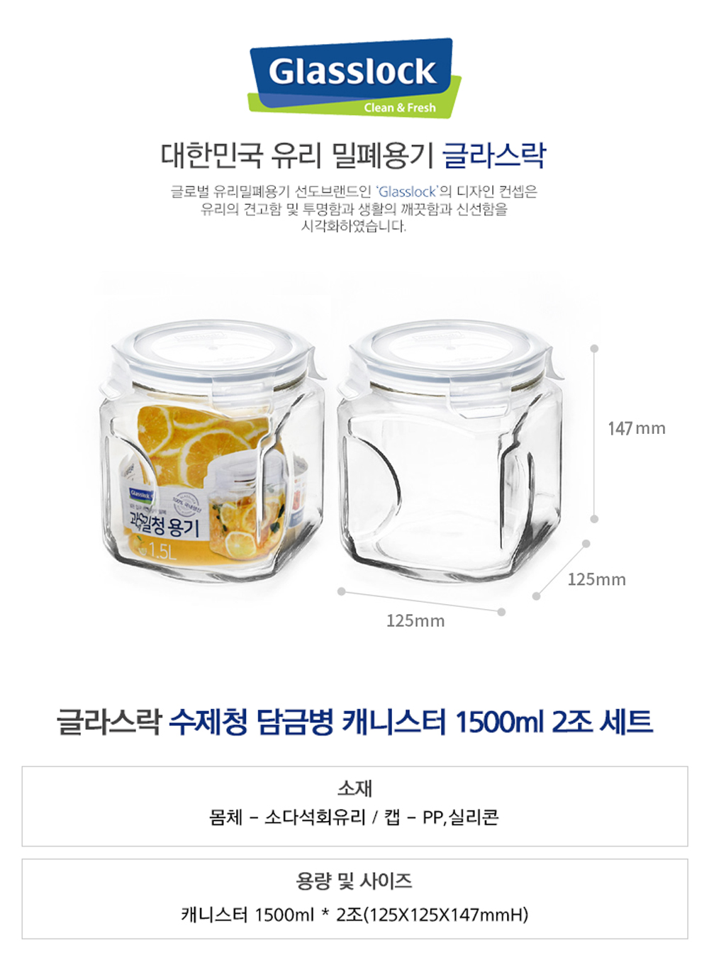 글라스락 수제청 담금병 캐니스터 1500ml 2조 세트