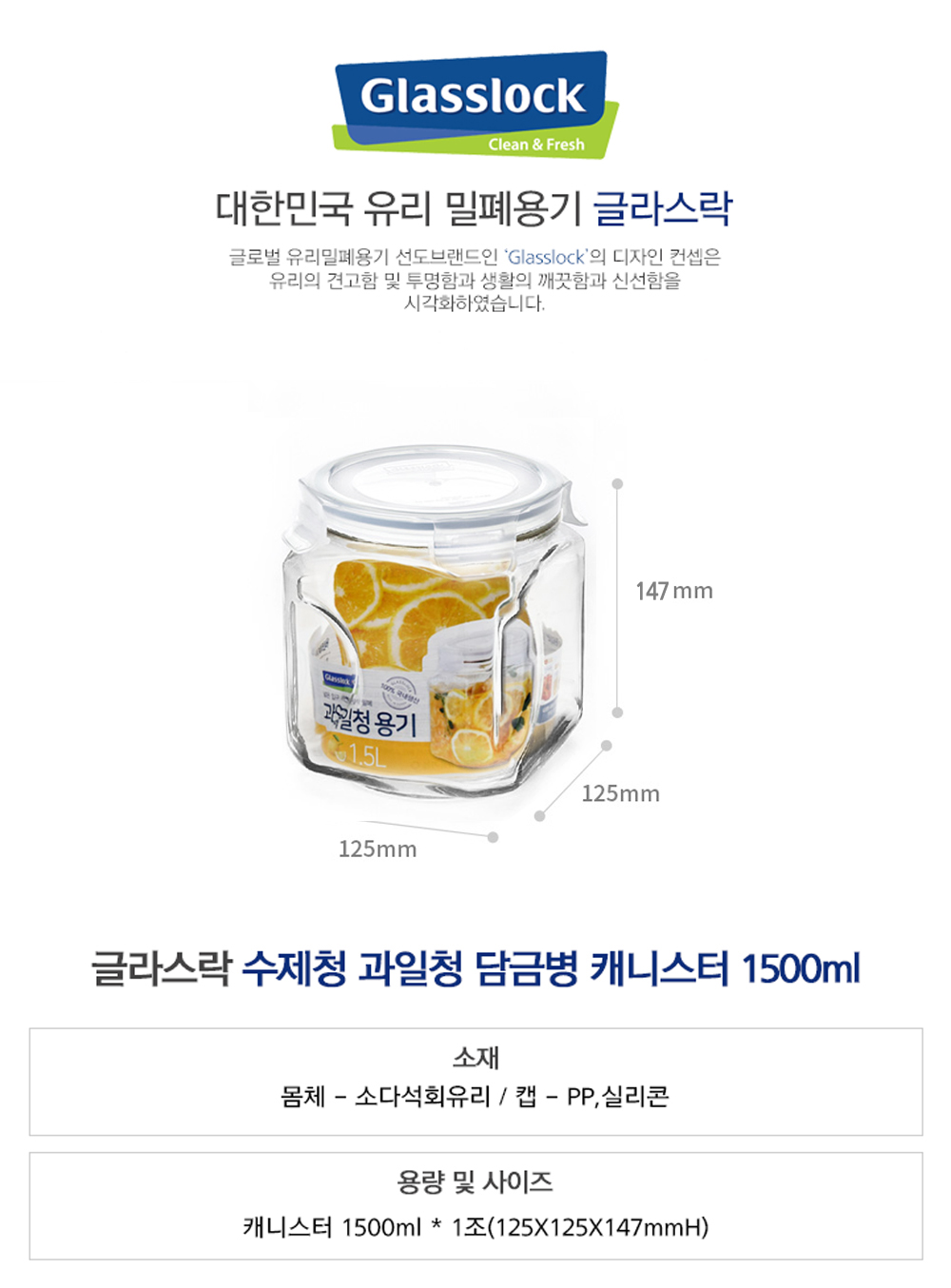 글라스락 과일청 담금병 캐니스터 1500ml