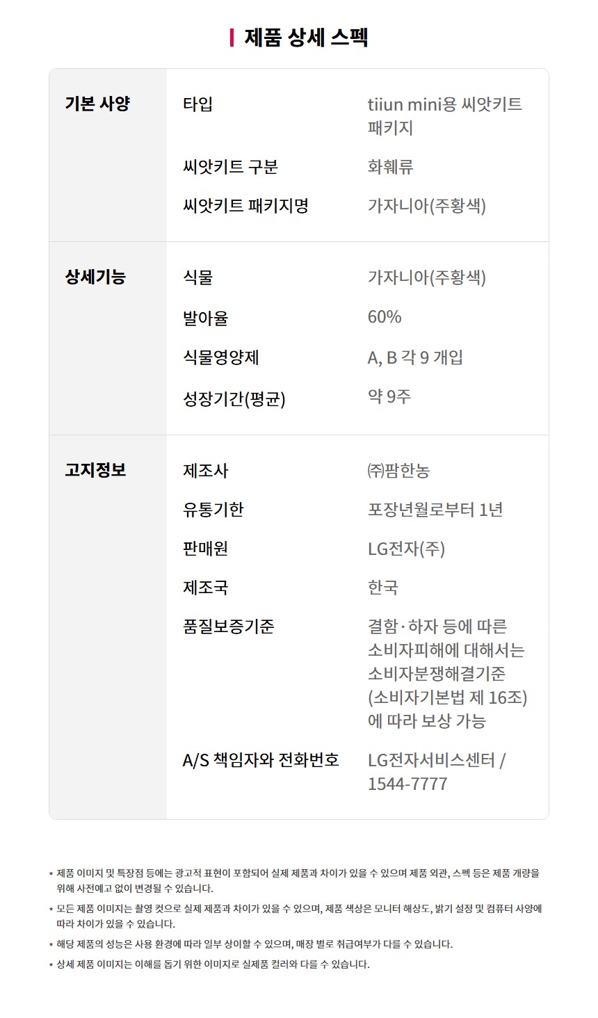 (LG)(신세계강남점)LG전자공식판매처 틔운미니 씨앗키트 LPM19 (가자니아 주황색)택배배송