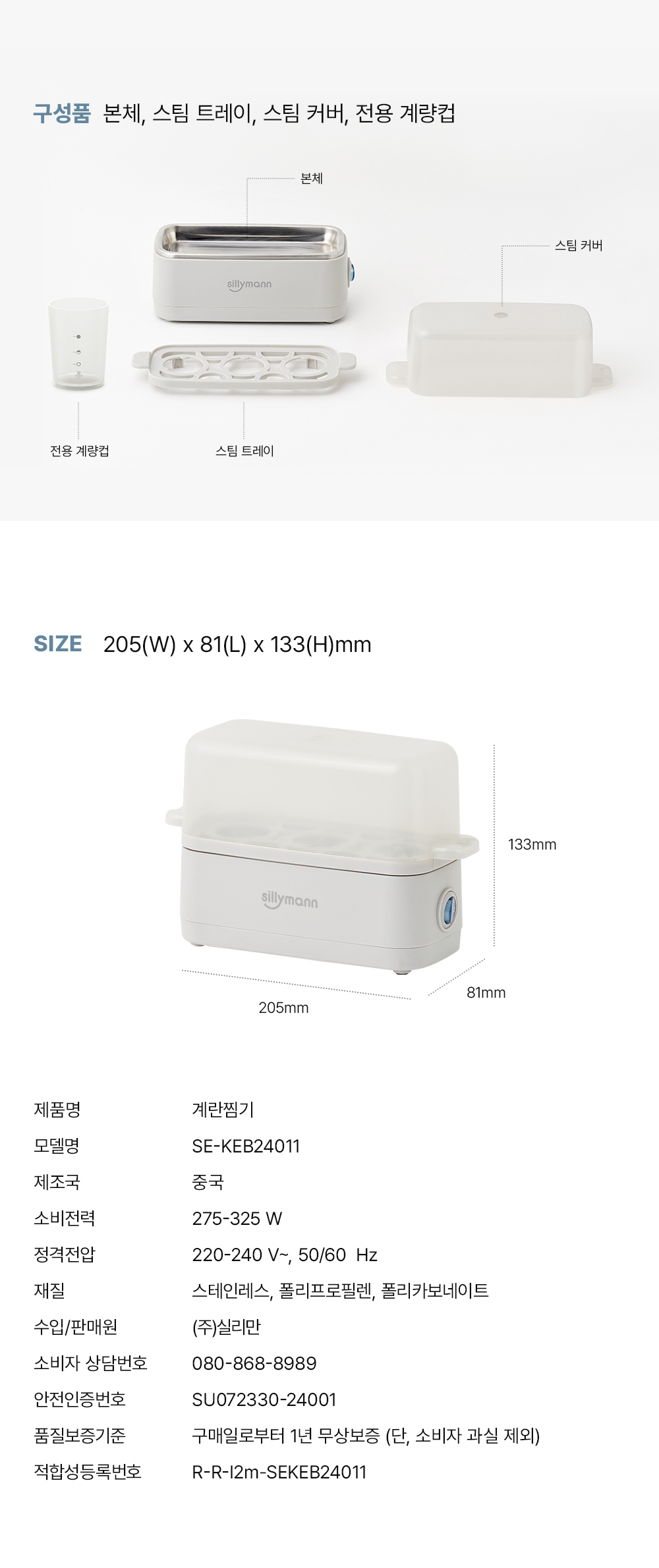 실리만 데일리 계란찜기 SE-KEB24011 에그찜기 원터치 버튼 분리 세척 미니