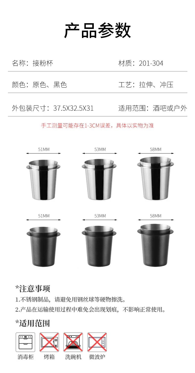 에스프레소 머신용 커피 도징 컵 내마모성 스테인레스 스틸 커피 도징 컵 스니핑 머그잔 58mm 53mm 51mm
