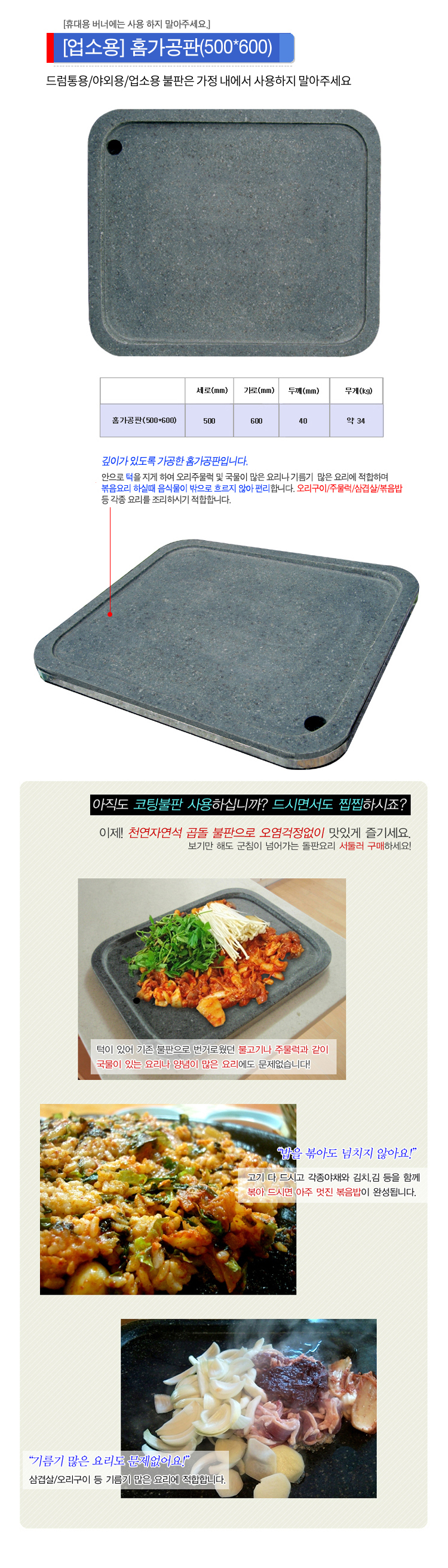 본상품구성 ■ 장수곱돌 업소용 고기불판 홈가공판 500x600