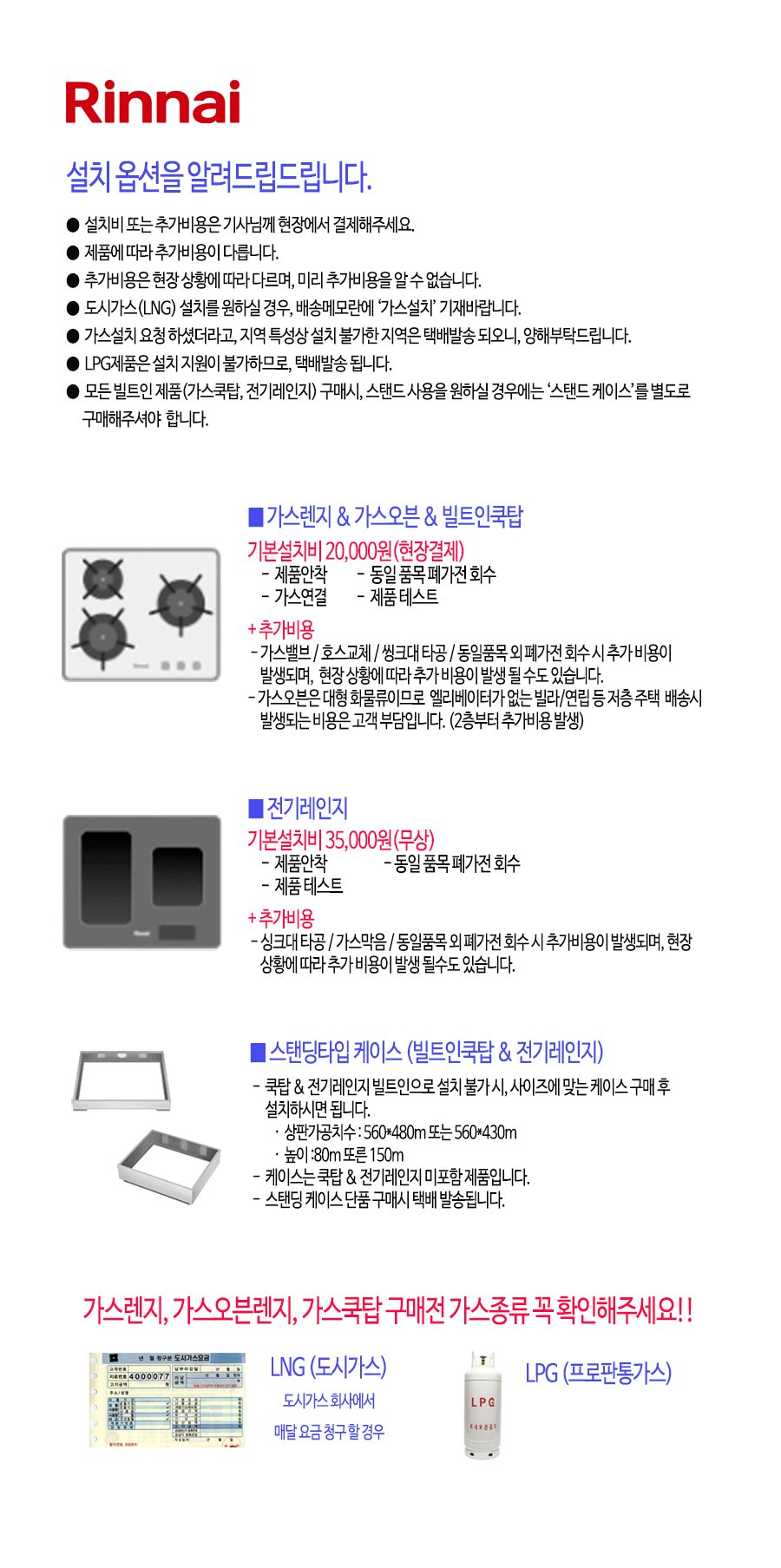 (대전신세계)신세계대전 린나이 3구 빌트인 가스쿡탑 화이트펄 RBR-P3511WD (도시가스) + 스탠드케이스