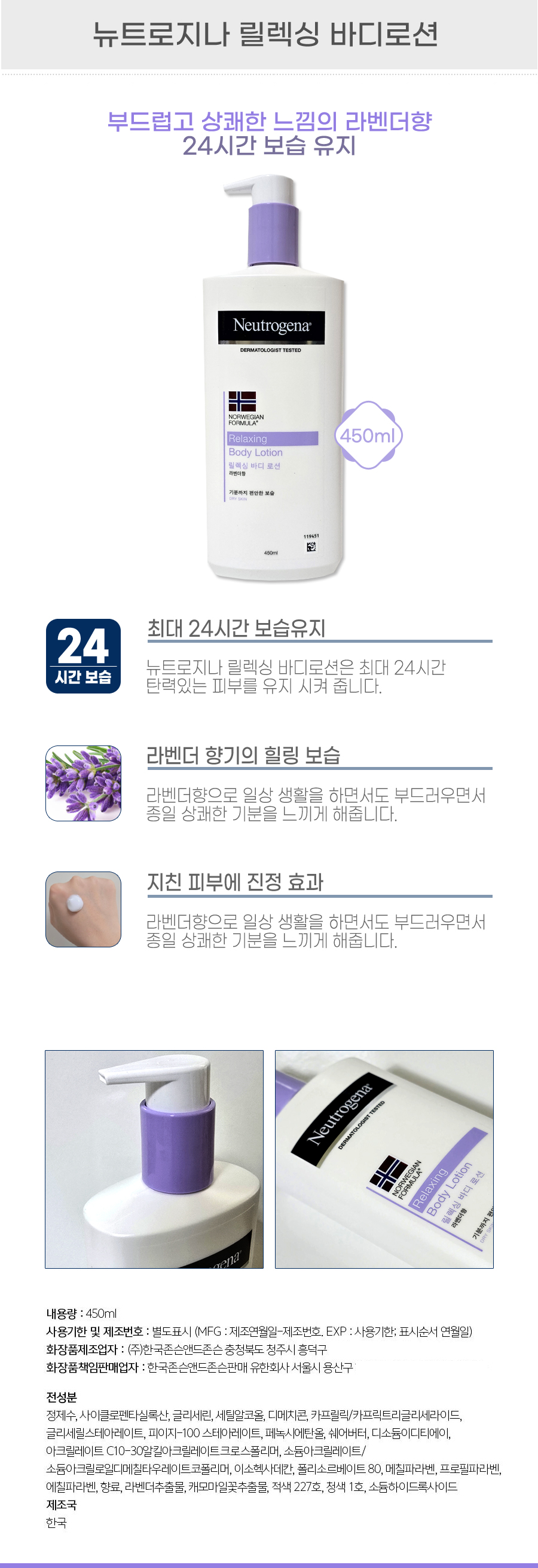 뉴트로지나 릴렉싱 바디로션 450ml 1+1 (총2개) 라벤더향 대용량