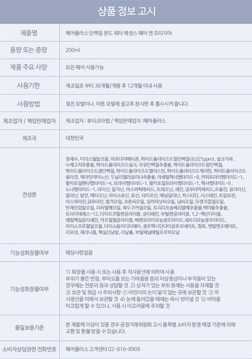 극손상 단백질 본드 워터에센스 3종 선물세트 /헤어미스트/노워시트리트먼트