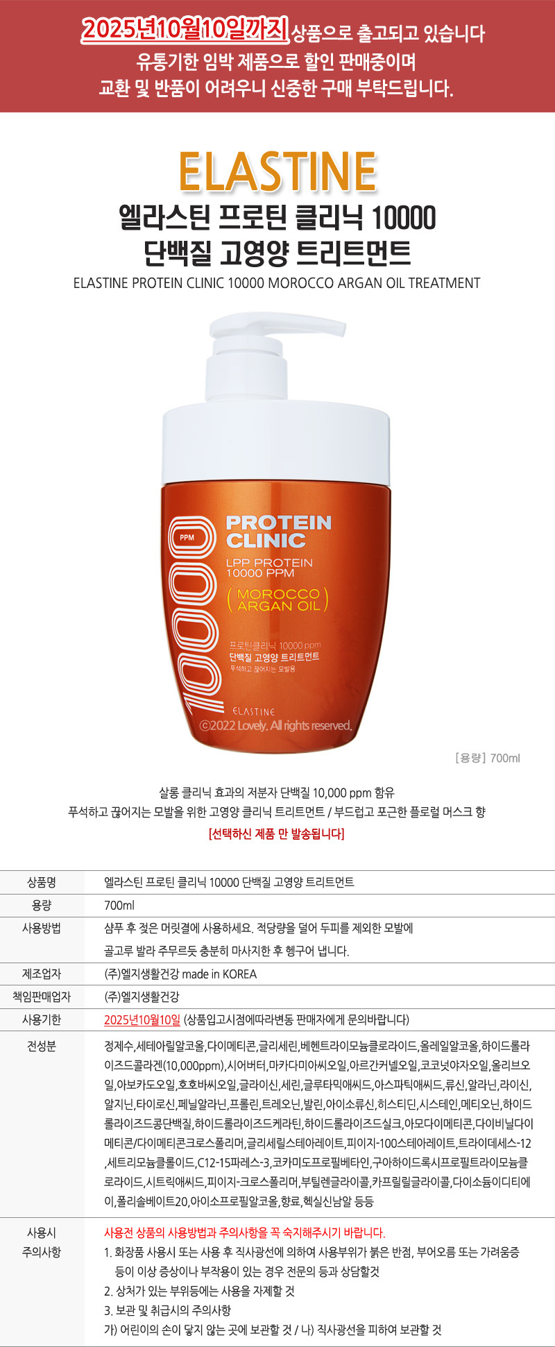 엘라스틴 프로틴 클리닉 10000 단백질 고영양 트리트먼트 700ml x 2개