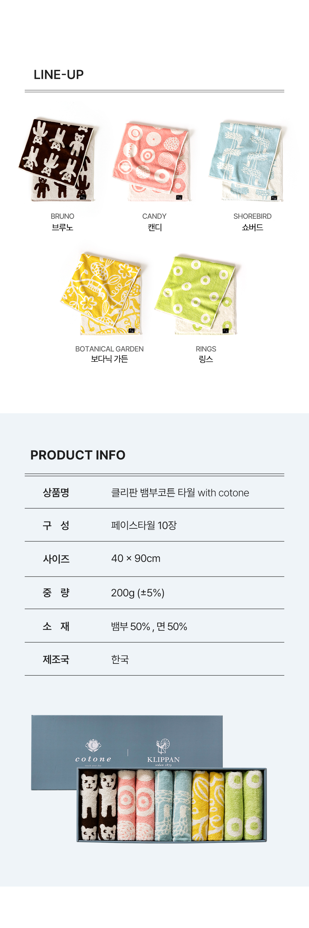 클리판 프리미엄 뱀부 코튼 타올 10종세트 with cotone