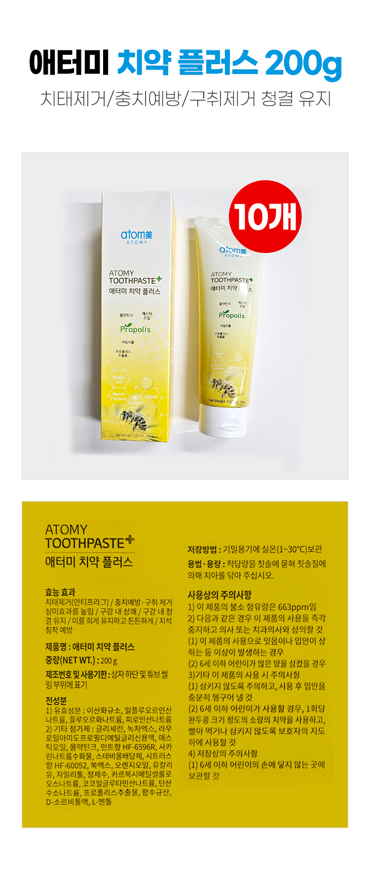 애터미 치약 플러스 프로폴리스 200g 10개