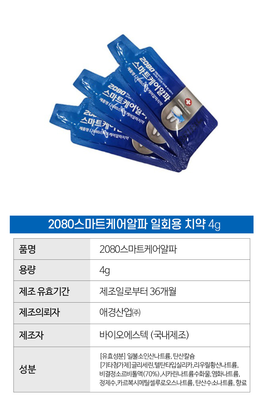 일회용 치약 2080 스마트케어알파 샤쉐 4g 미니치약 2000개 휴대용 여행용 업소용 대용량