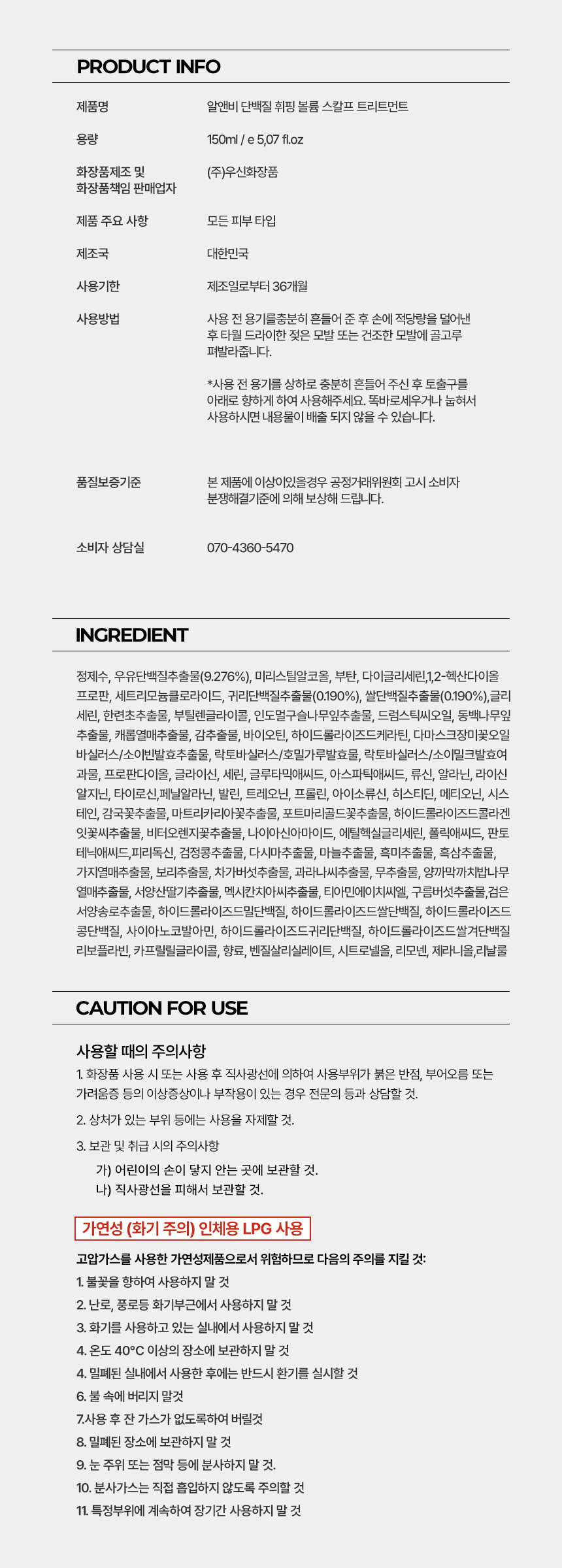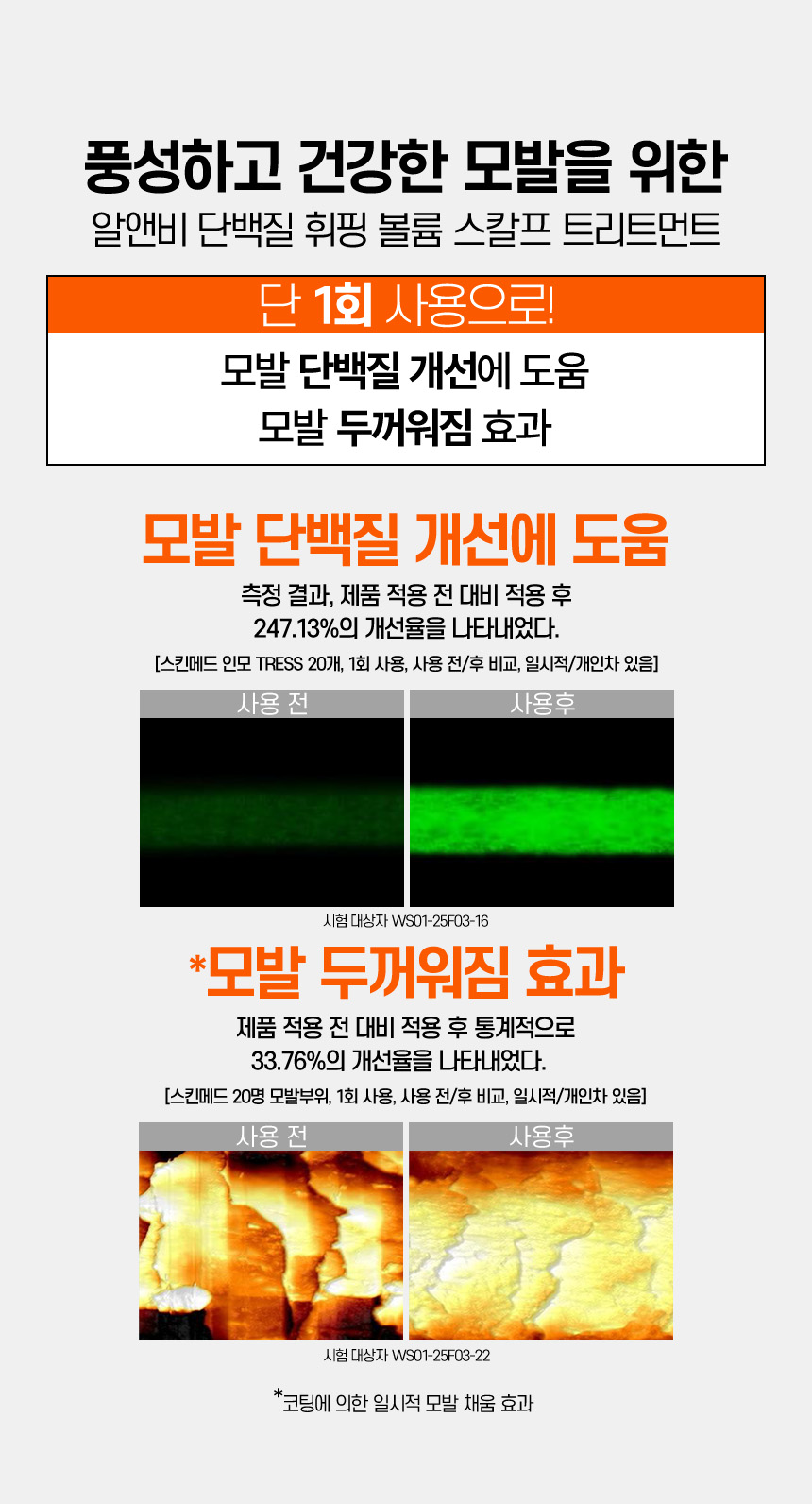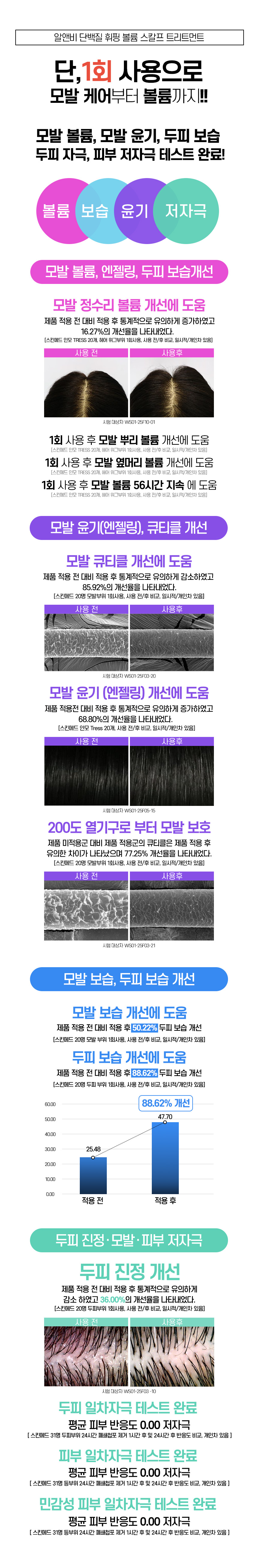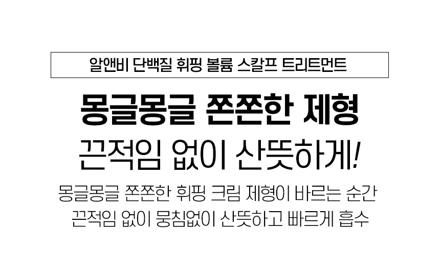 본상품구성 | 알앤비 단백질 휘핑 볼륨 스칼프 트리트먼트 150ml 6개 + 알앤비 브러쉬 1개 (핑크,민트,퍼플,블루 中 랜덤 1종) |