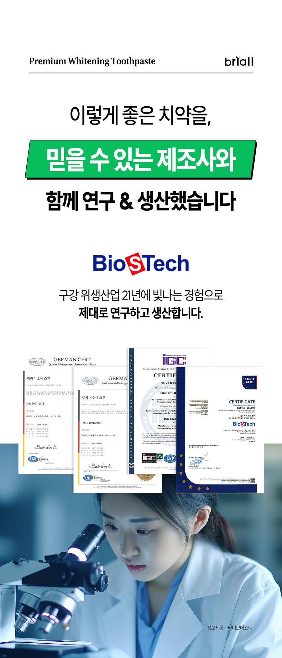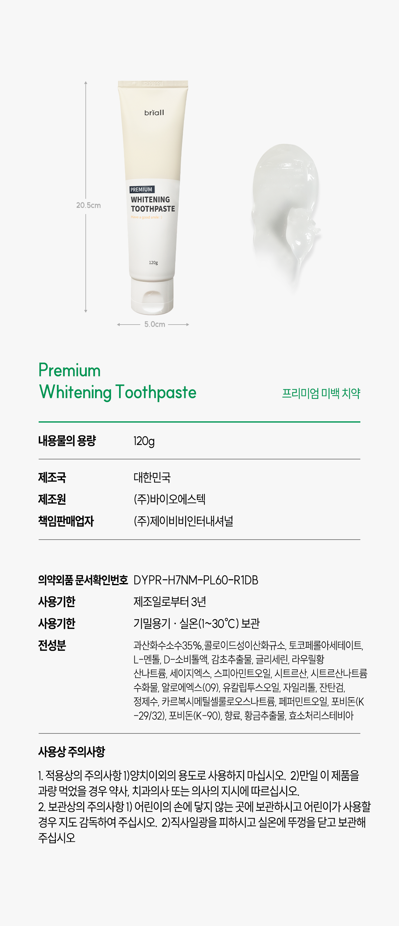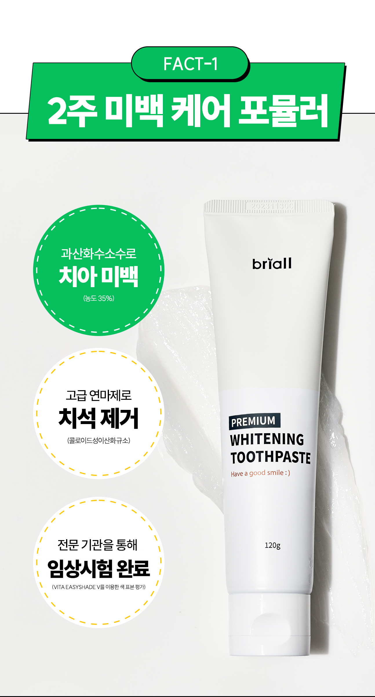브리올 치과미백동일성분 프리미엄 미백치약 임상완료 3개입