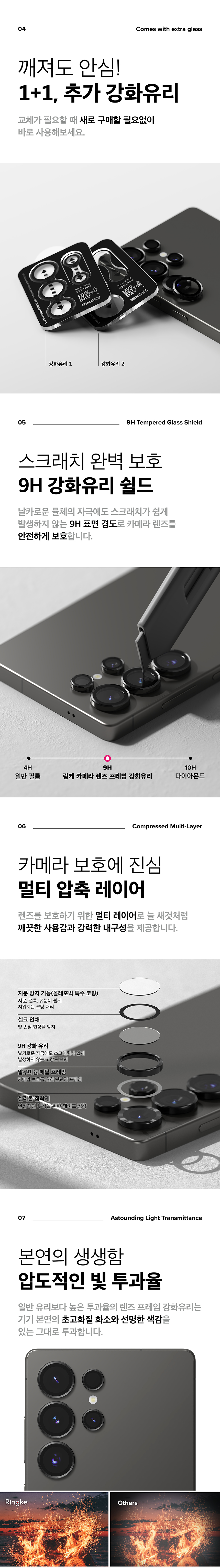 갤럭시S25 울트라 보호 필름 링케 카메라 렌즈 프레임 강화유리 풀커버 2매