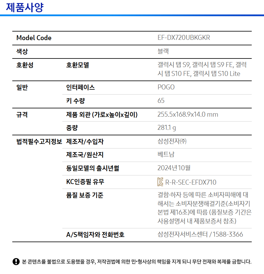 삼성 정품 AI 슬림 키보드 북커버 케이스 갤럭시 탭 S9/S9FE/S10FE EF-DX720