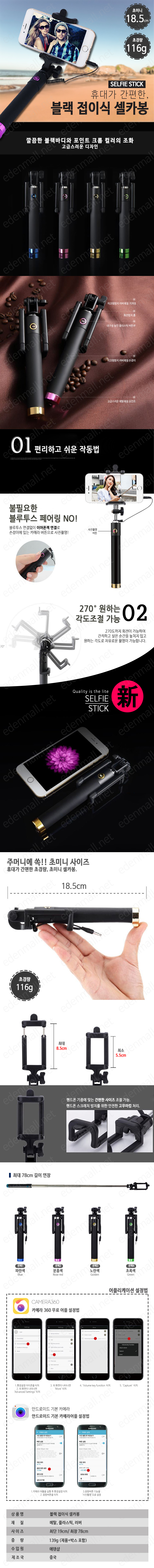 직수입/블랙유광/접이식셀카봉/모노포드/셀카봉