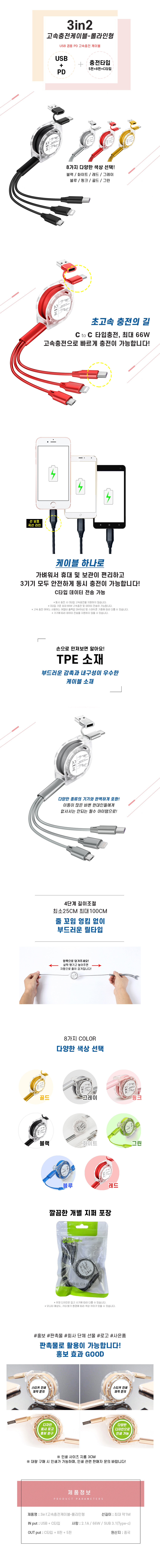 C to C 멀티 핸드폰 고속 충전케이블 PD 초고속 충전선 자동 선 감김 정리 롤 릴 충전 케이블 3A 6A 60W