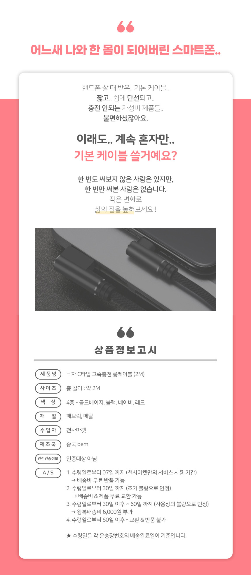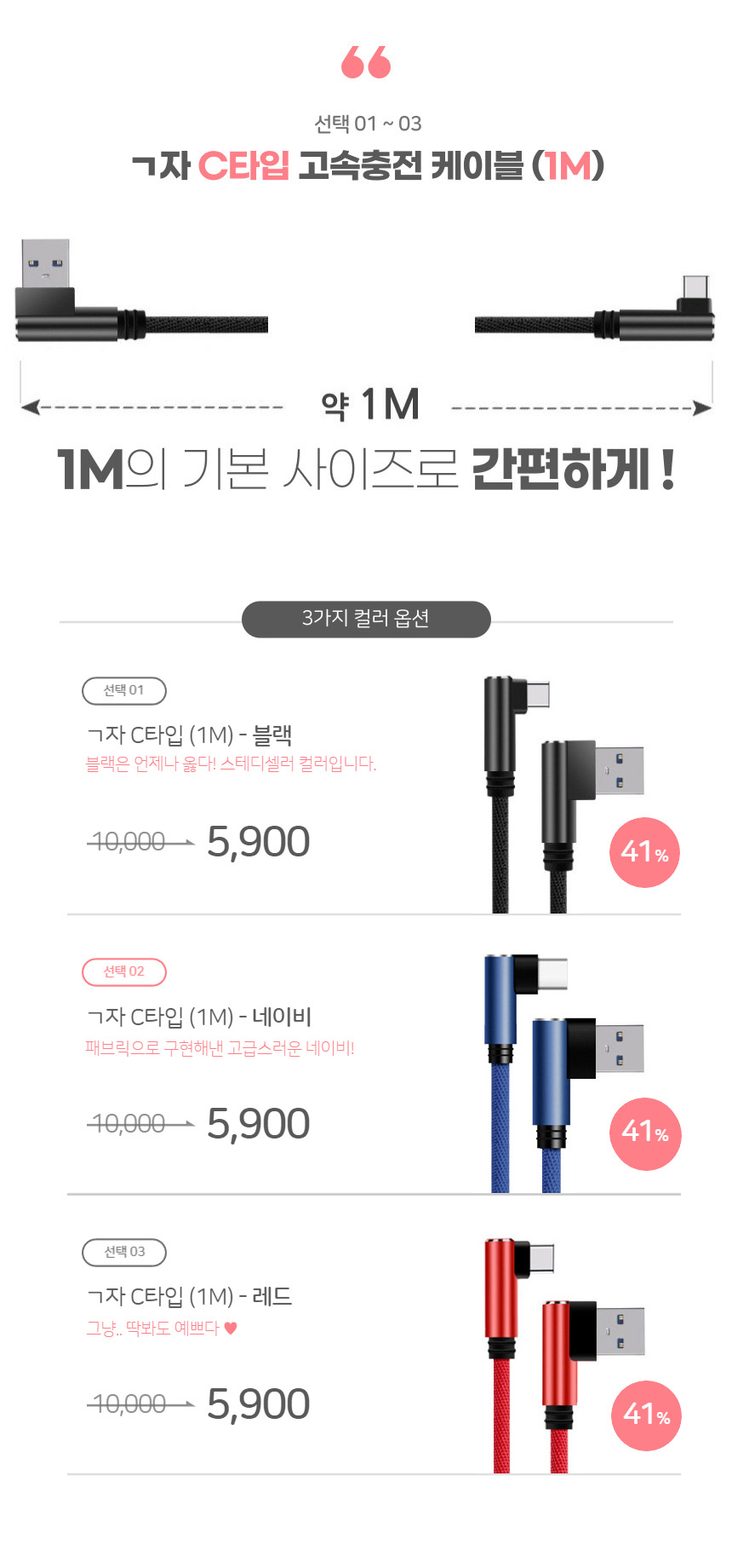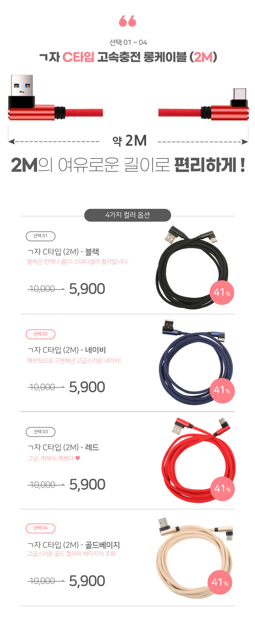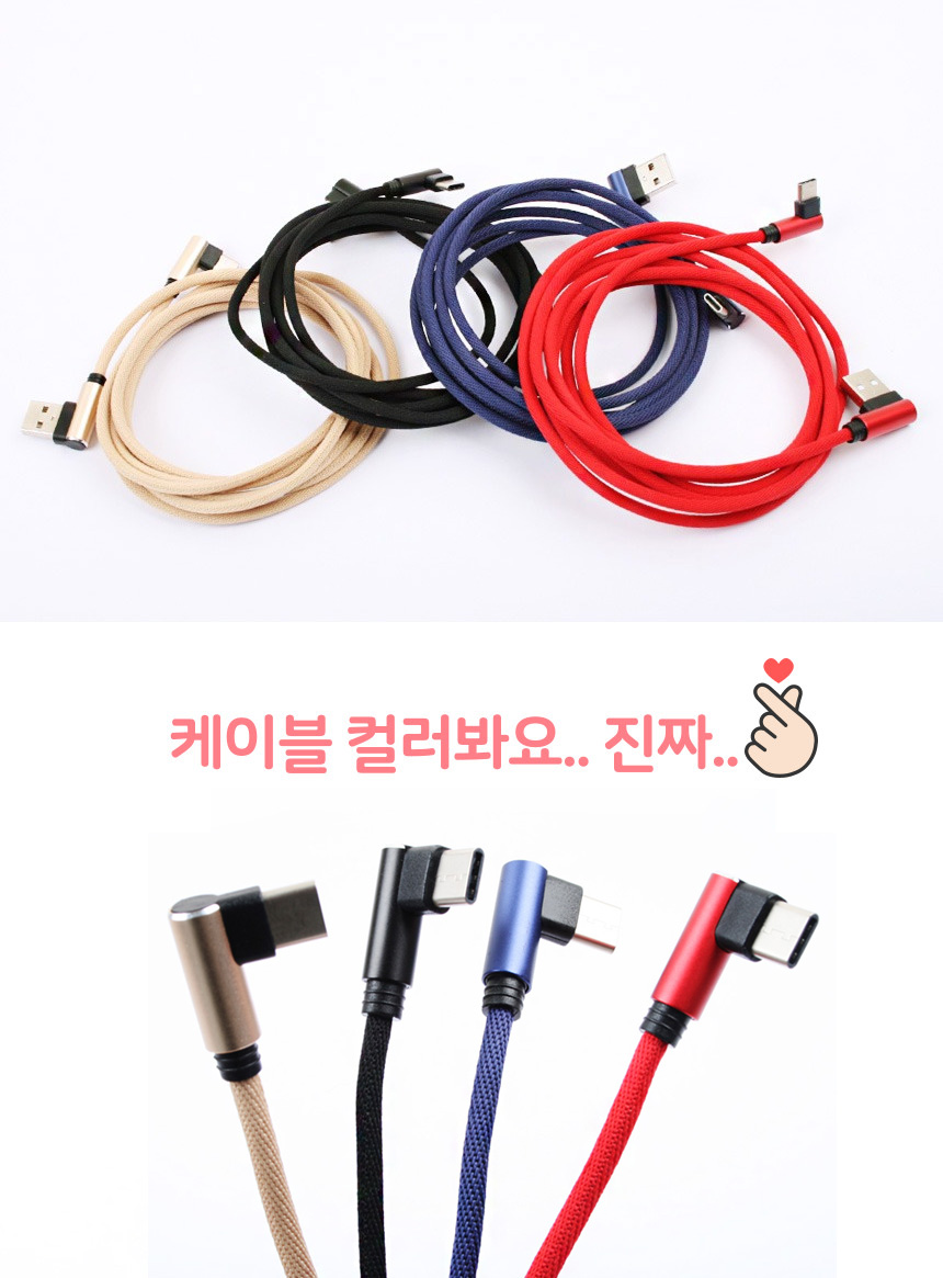 ㄱ자 게이밍 케이블 USB C타입 케이블 충전기선 삼성 갤럭시 고속 충전 롱케이블 90도 2M 1M