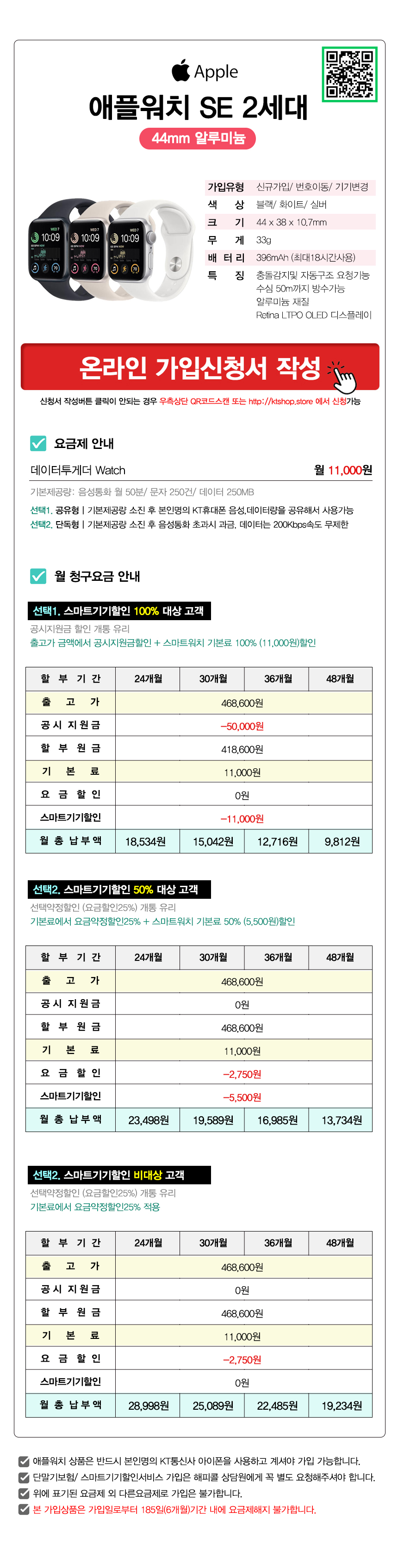 kt 애플 워치se 2세대 40mm 44mm 셀룰러 LTE KT신규가입 당일개통