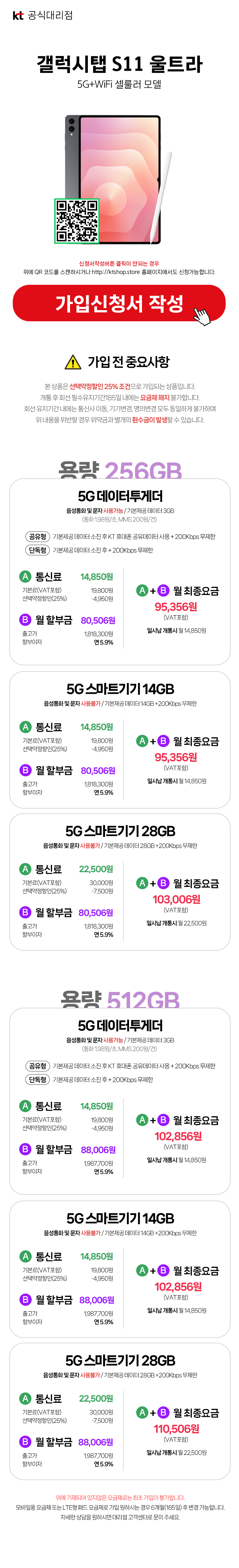 KT 법인 개통 갤럭시 탭 S11 울트라 신규가입 기기변경 통신사 할부개통