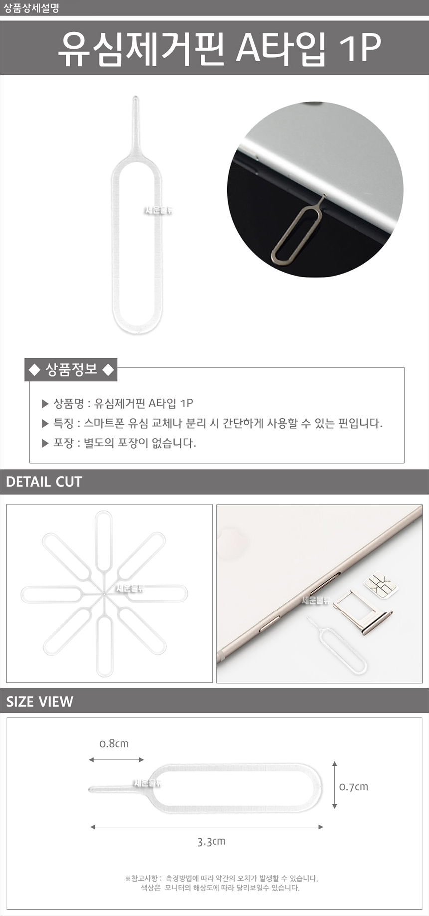 (유심제거핀 A타입1p) 휴대폰 유심교체 자가수리 공구