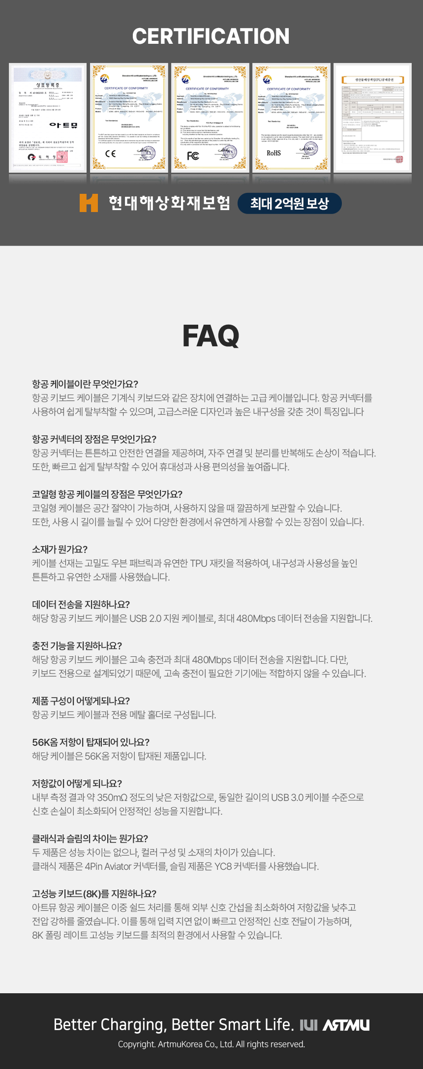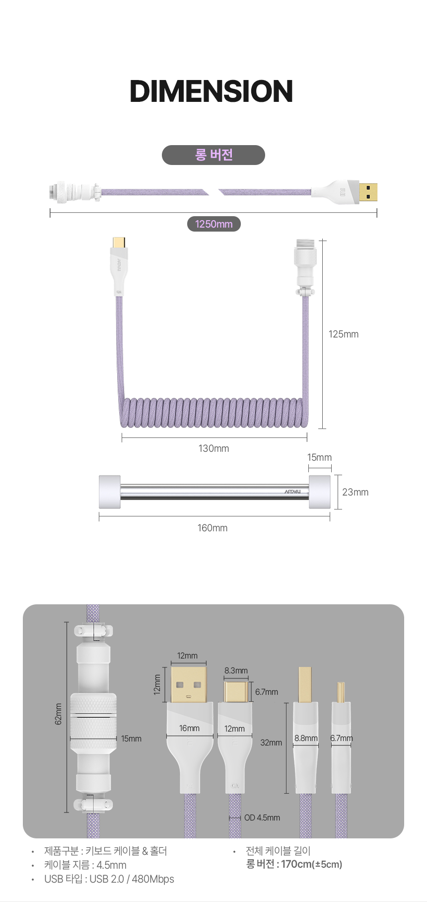 C타입 키보드 항공 코일 케이블 홀더 세트 클래식