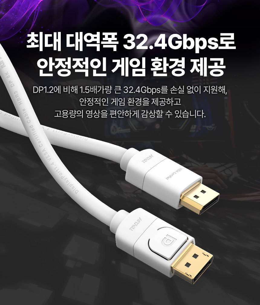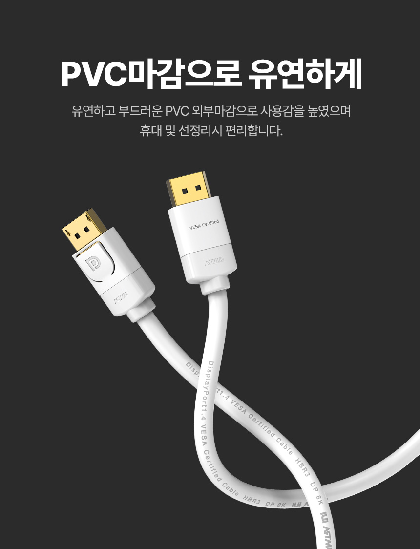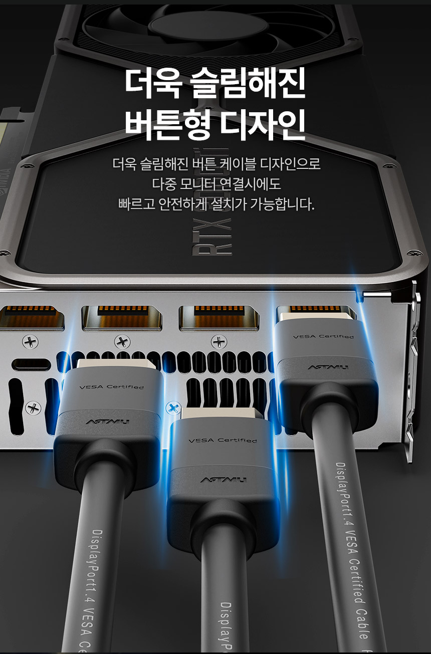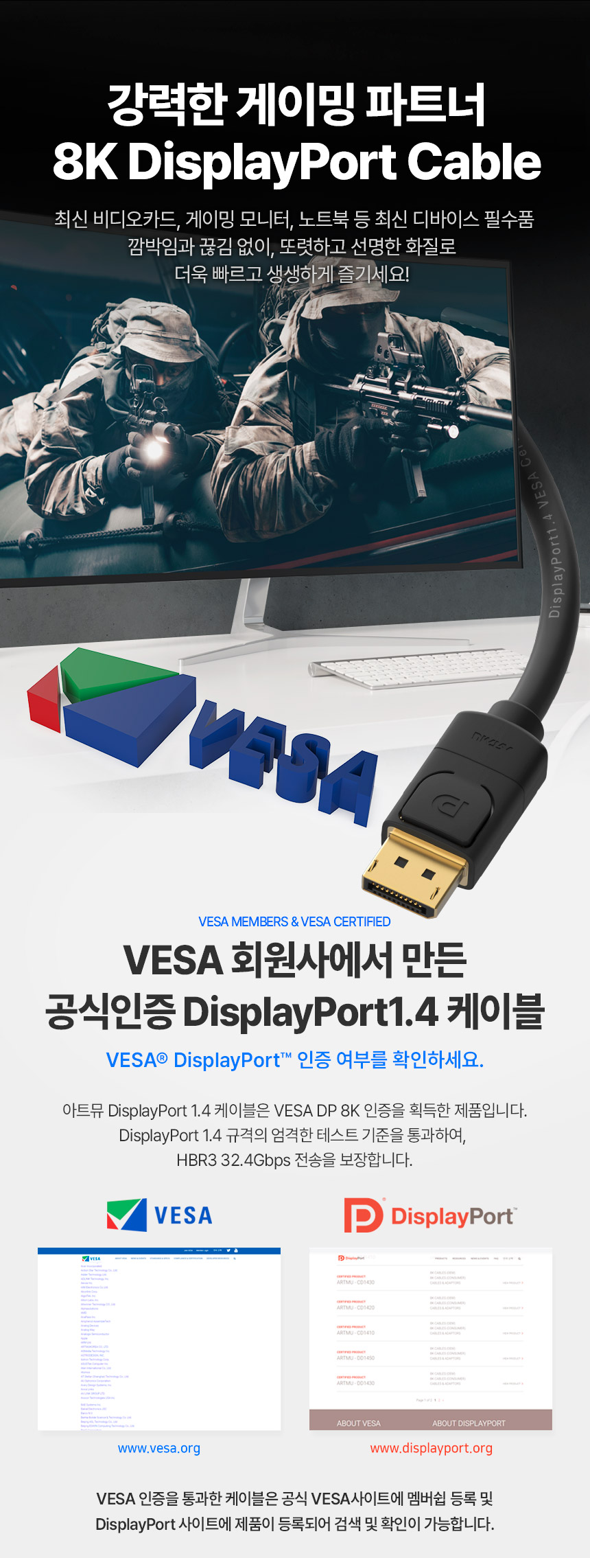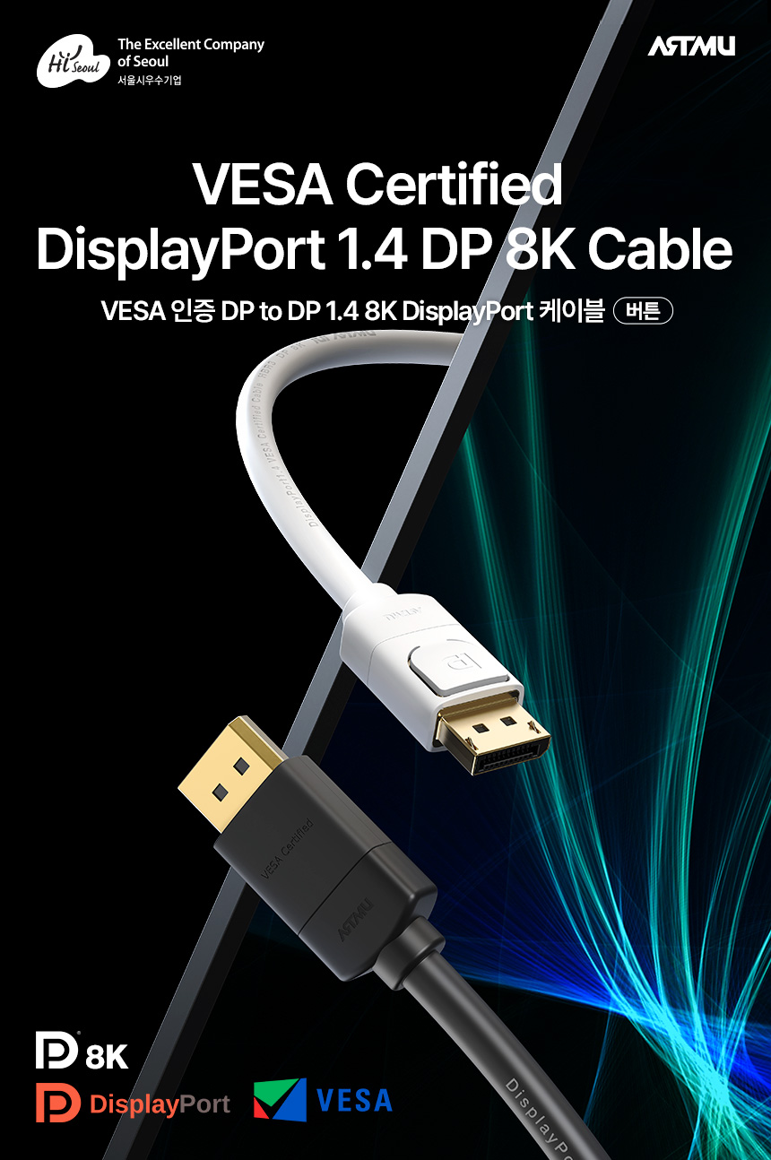 VESA 인증 DP to DP 1.4 8K DisplayPort 케이블 버튼 3m