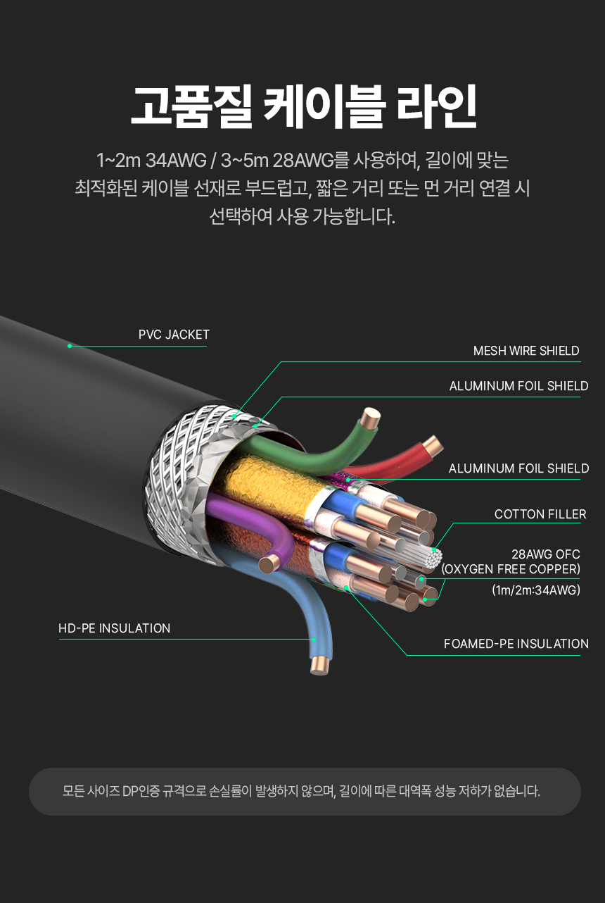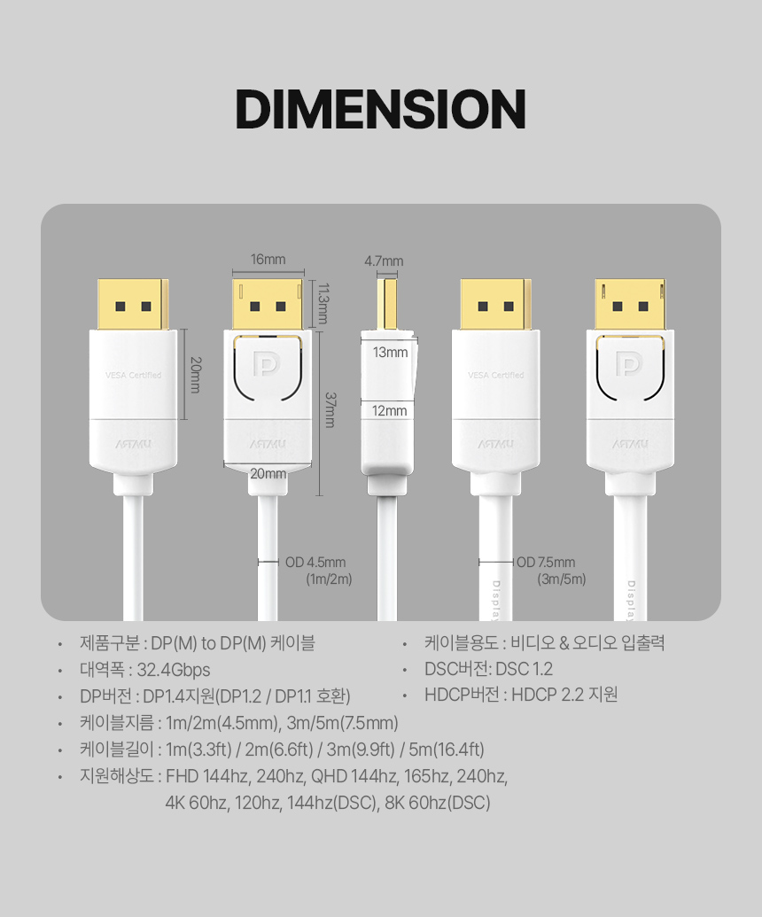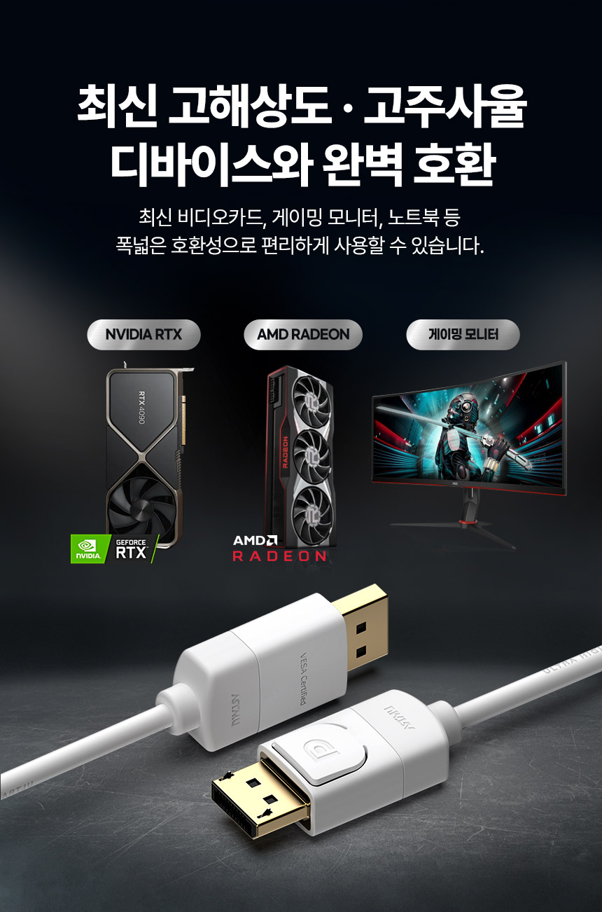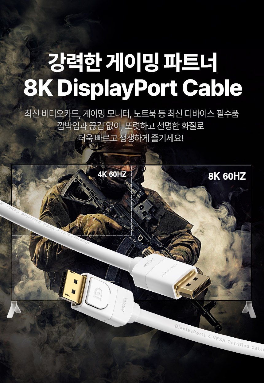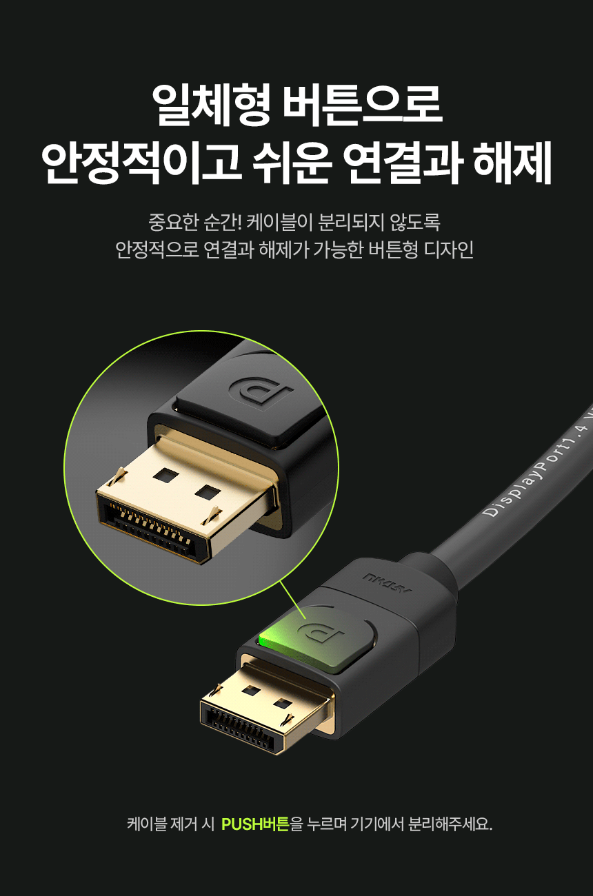 VESA 인증 DP to DP 1.4 8K DisplayPort 케이블 버튼 3m